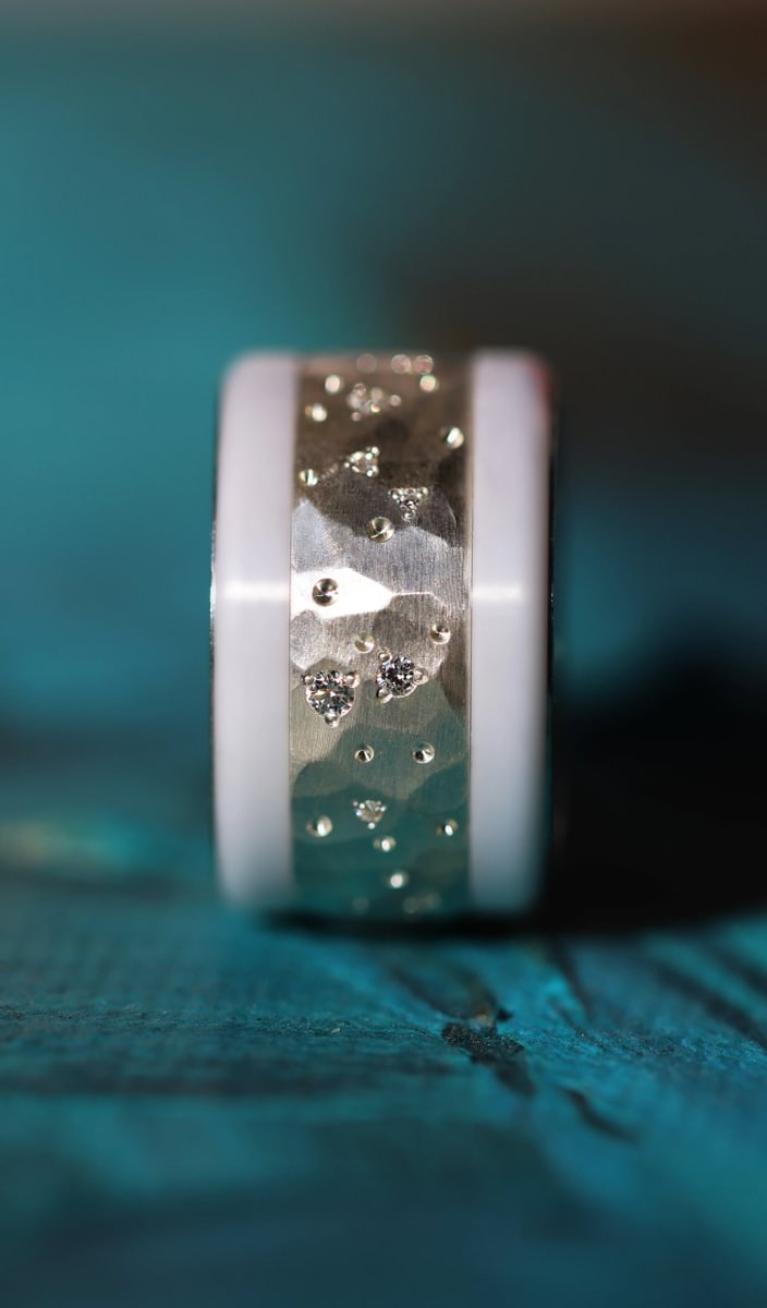 ✔ Sertissage de diamants blancs : finesse et contraste éclatant