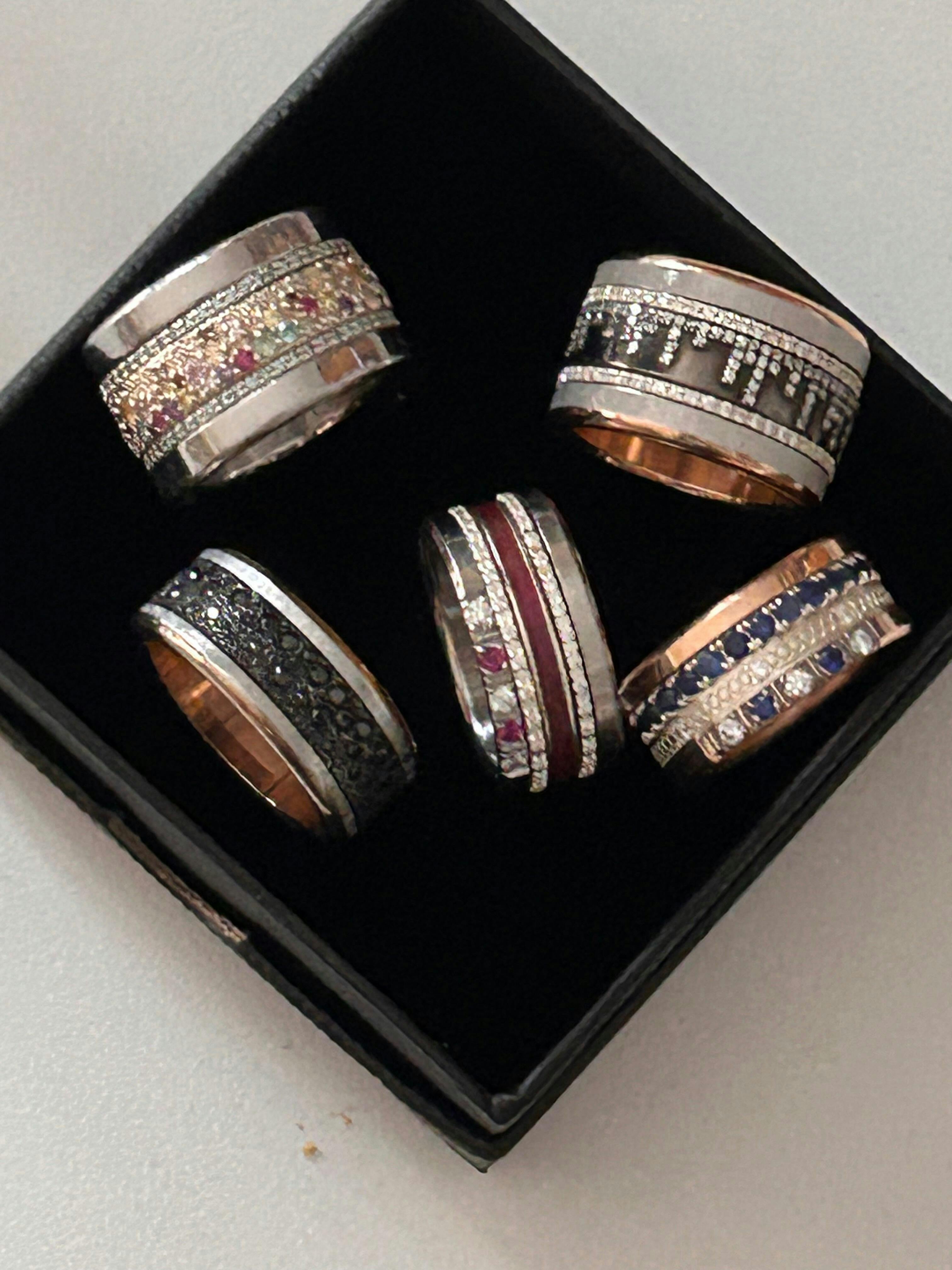 Sur certaines photos, certaines de nos bagues sont serties. Si vous souhaitez ajouter des diamants à votre base, nous vous invitions à consulter nos options de sertissage.