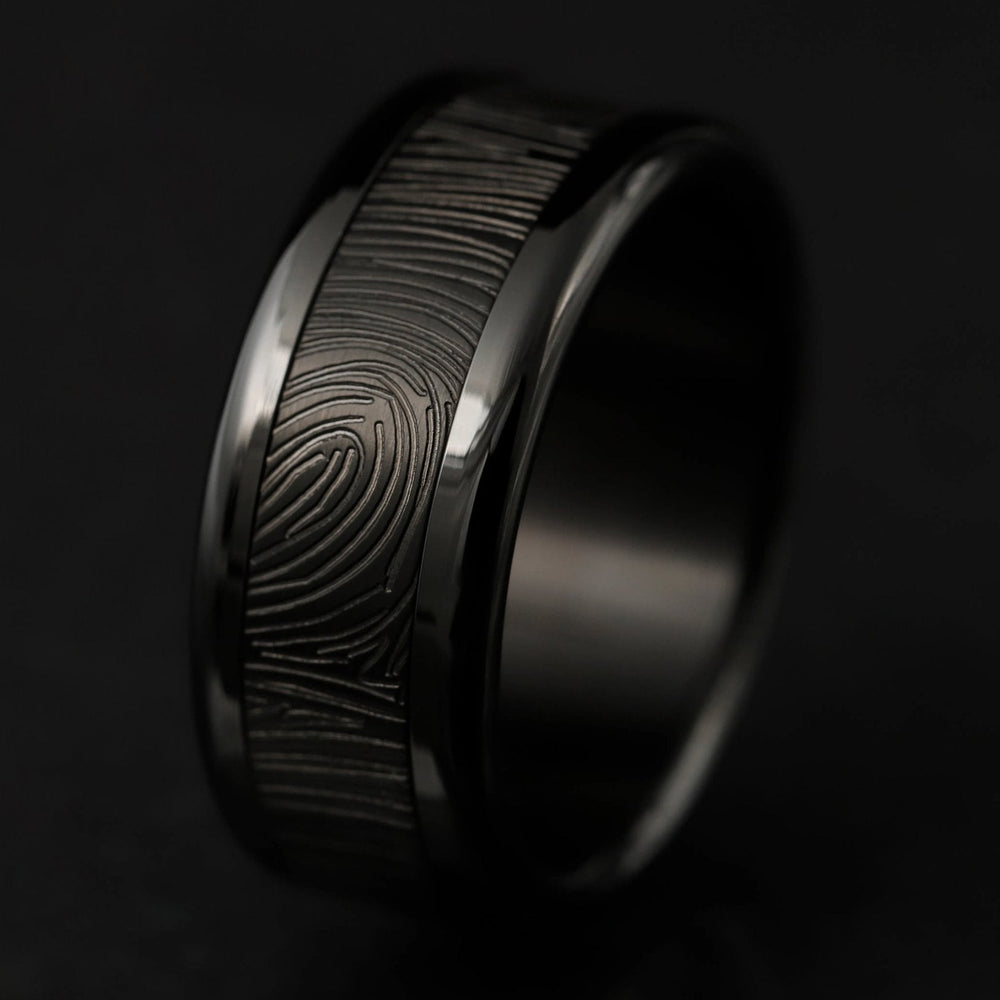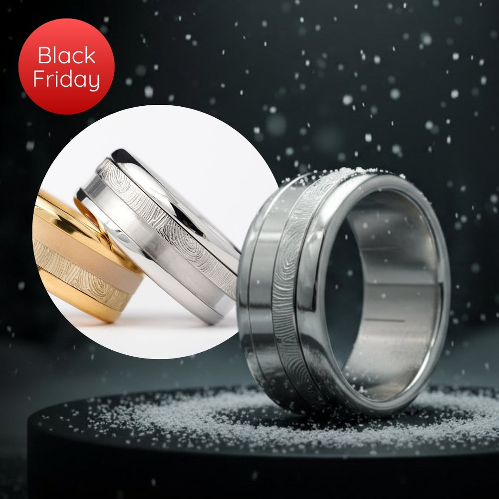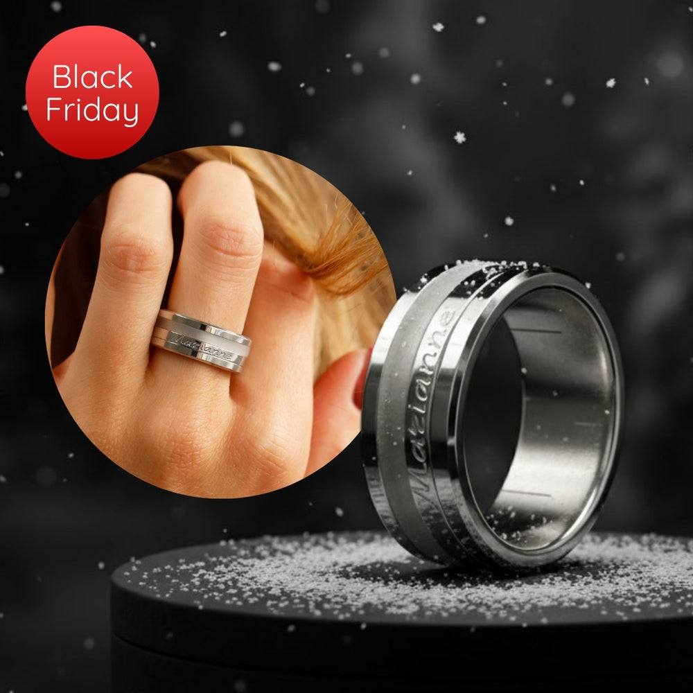 Bagues en acier inoxydable avec anneaux interchangeables et gravure personnalisée, texte, prénom et empreinte digitale