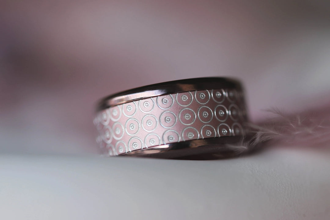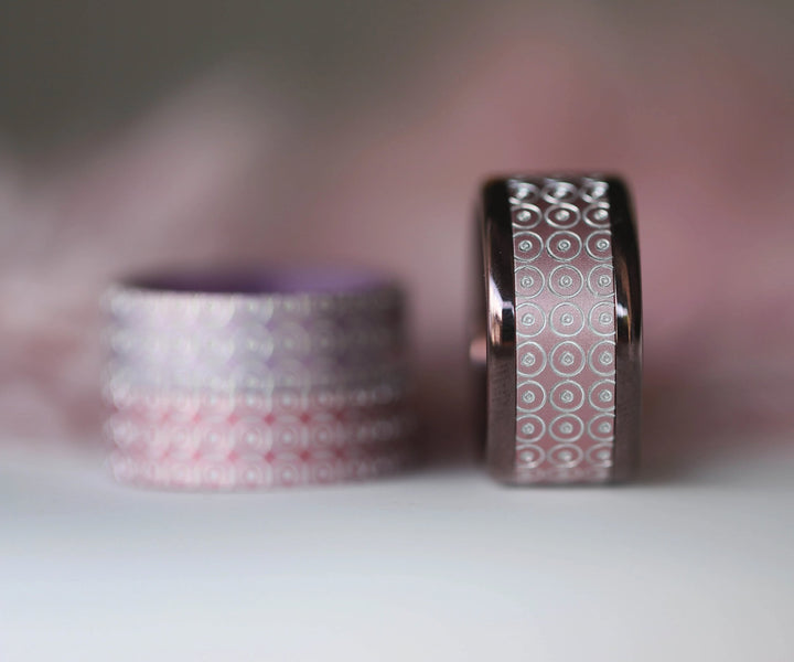 Originalité et personnalisation : L’aluminium au couleur pastel, gravé d’un motif graphique, vous permet de créer une bague unique en hommage à la cause d'Octobre Rose.
