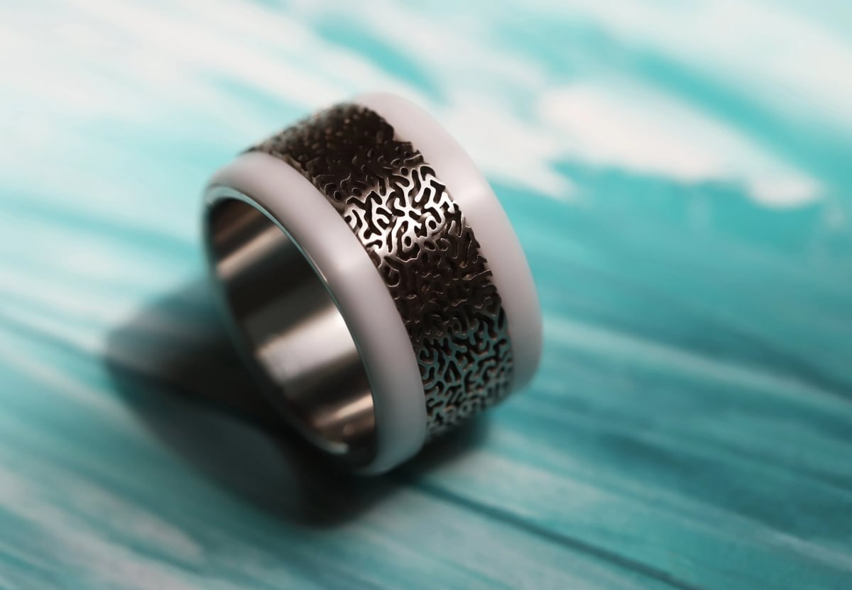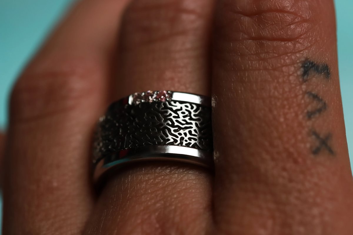 Chaque ouverture dans le métal reproduit les lignes naturelles du corail, comme sculptées par les vagues et le temps, offrant une base ajourée qui laisse filtrer la lumière — ou un insert de couleur glissé en dessous, pour une personnalisation infinie.