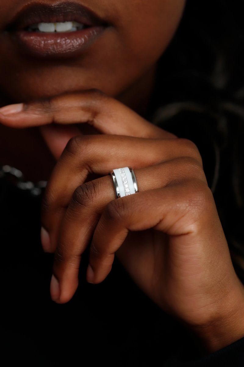 • Un anneau Medium Aura Authentique en argent 925, serti de zircons blancs, symbole de pureté, de lumière et d’harmonie.