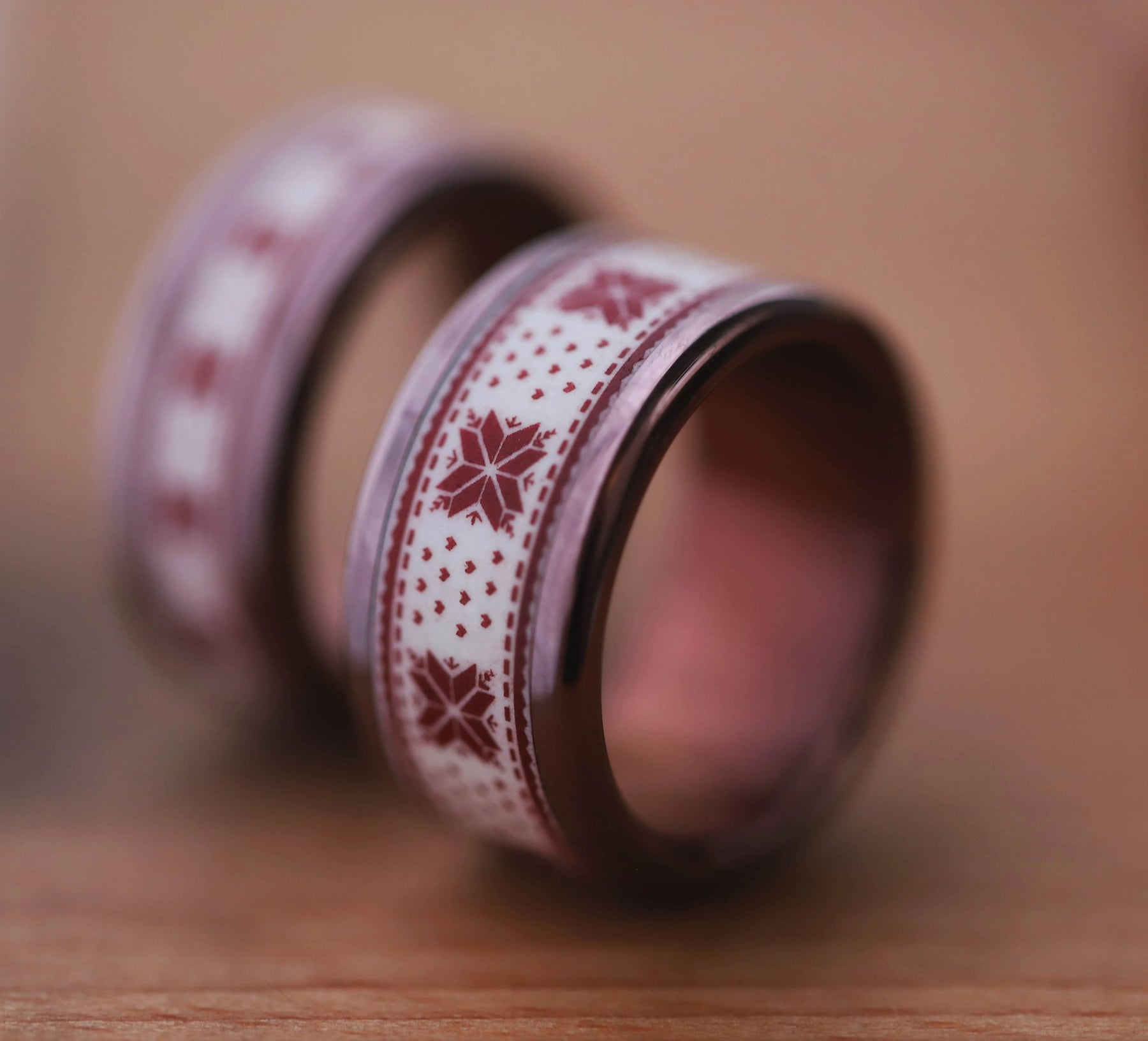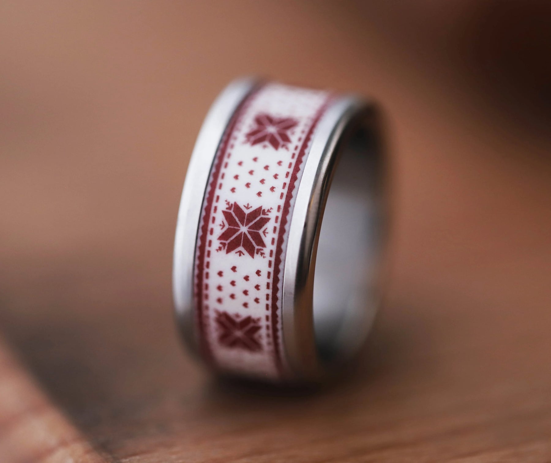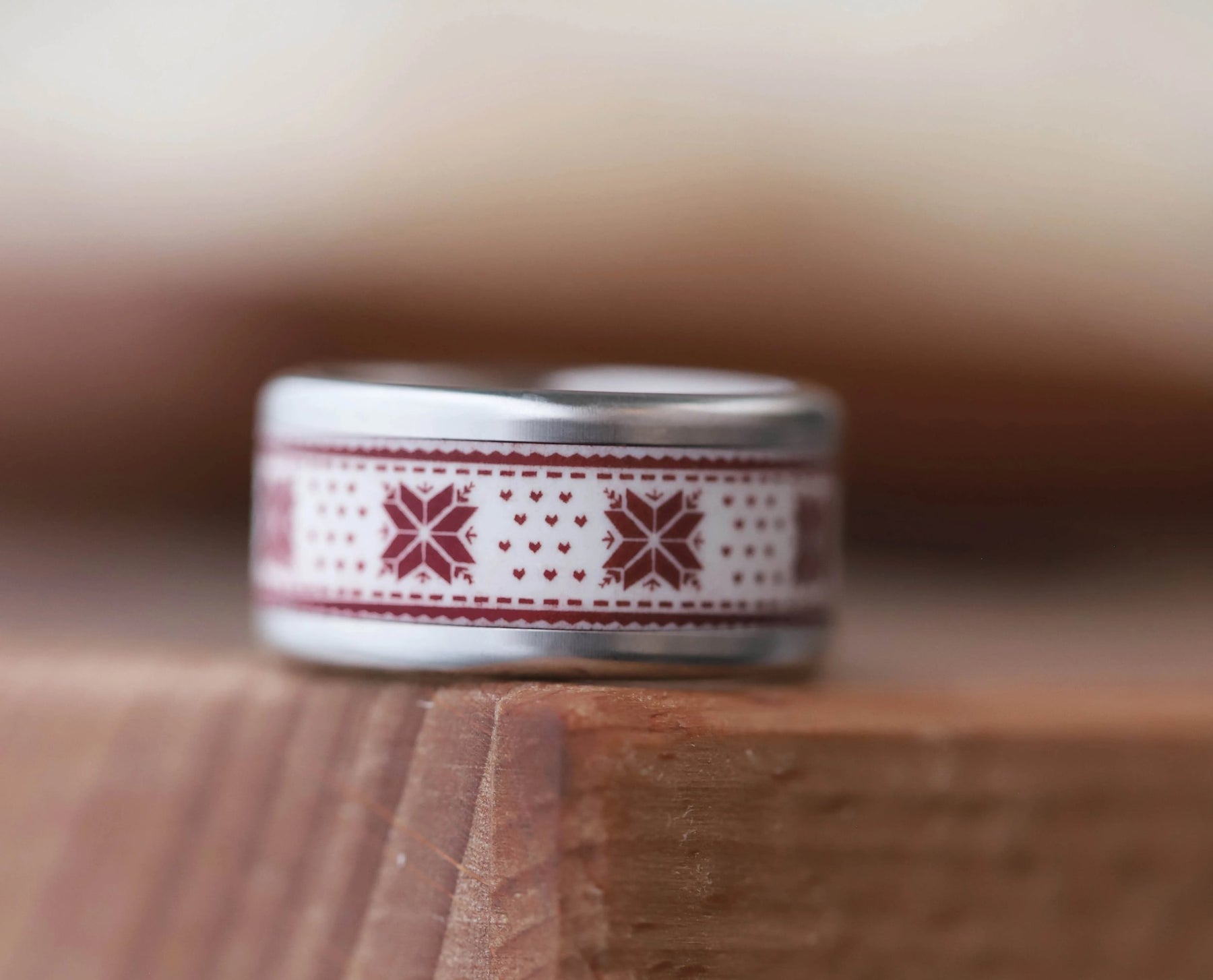 Inspiré par nos célèbres tricots de Noël, cet addon évoque immédiatement l'esprit festif de la saison de décembre. Son graphisme rappelle les motifs traditionnels des pulls de Noël, avec des couleurs bordeaux et blanches qui plongent instantanément dans l'univers chaleureux des fêtes. Nous vous suggérons de revêtir votre plus beau pull de Noël et d'assortir cette bague pour une soirée cocooning au coin du feu. Profitez de l'élégance et du confort que ce bijou apporte, rappelant les moments magiques de Noël et l'ambiance conviviale des soirées hivernales.