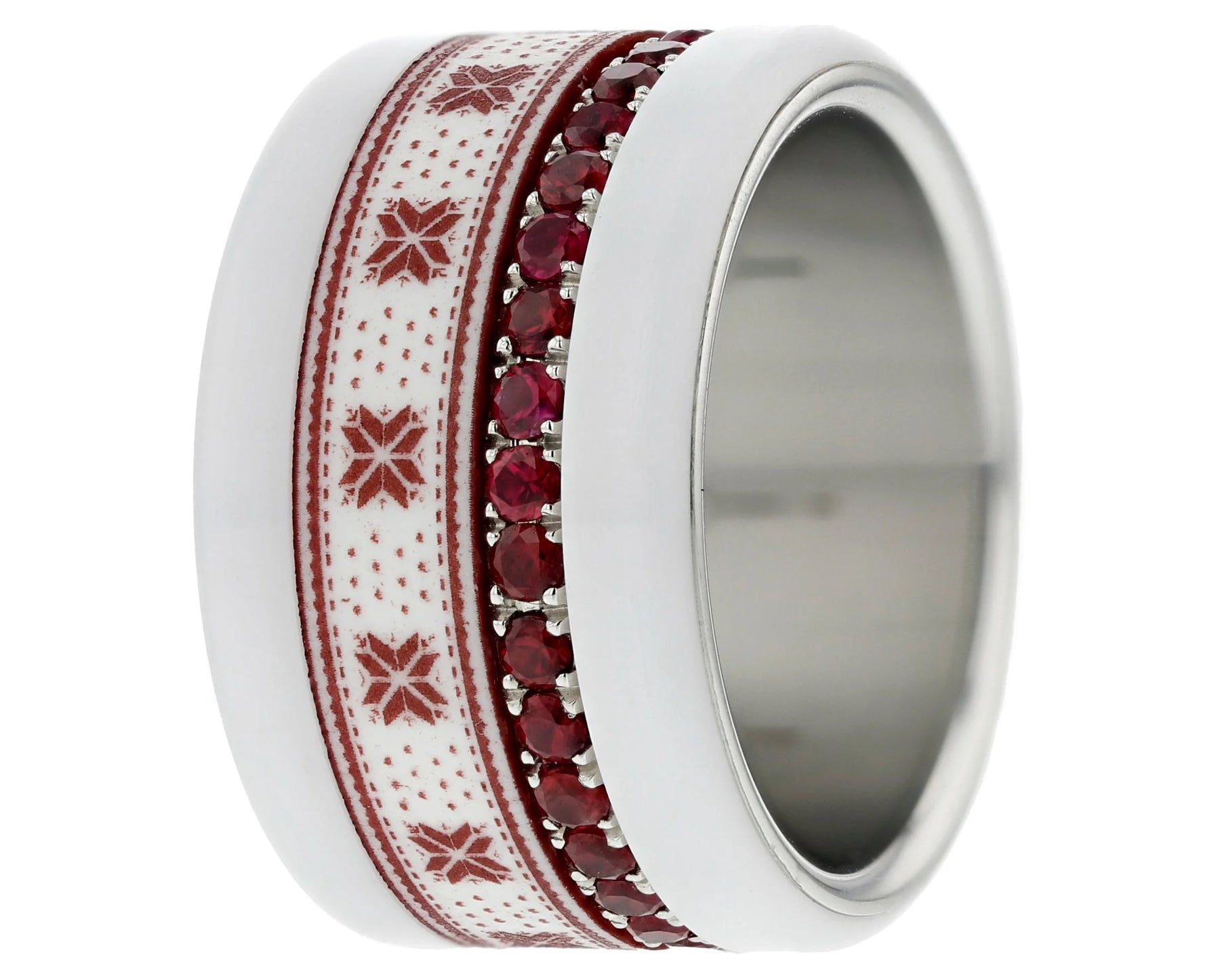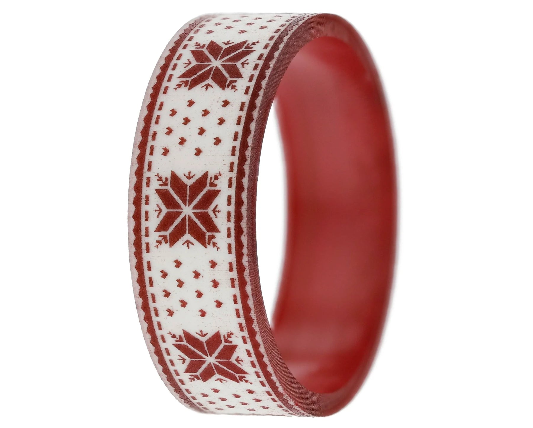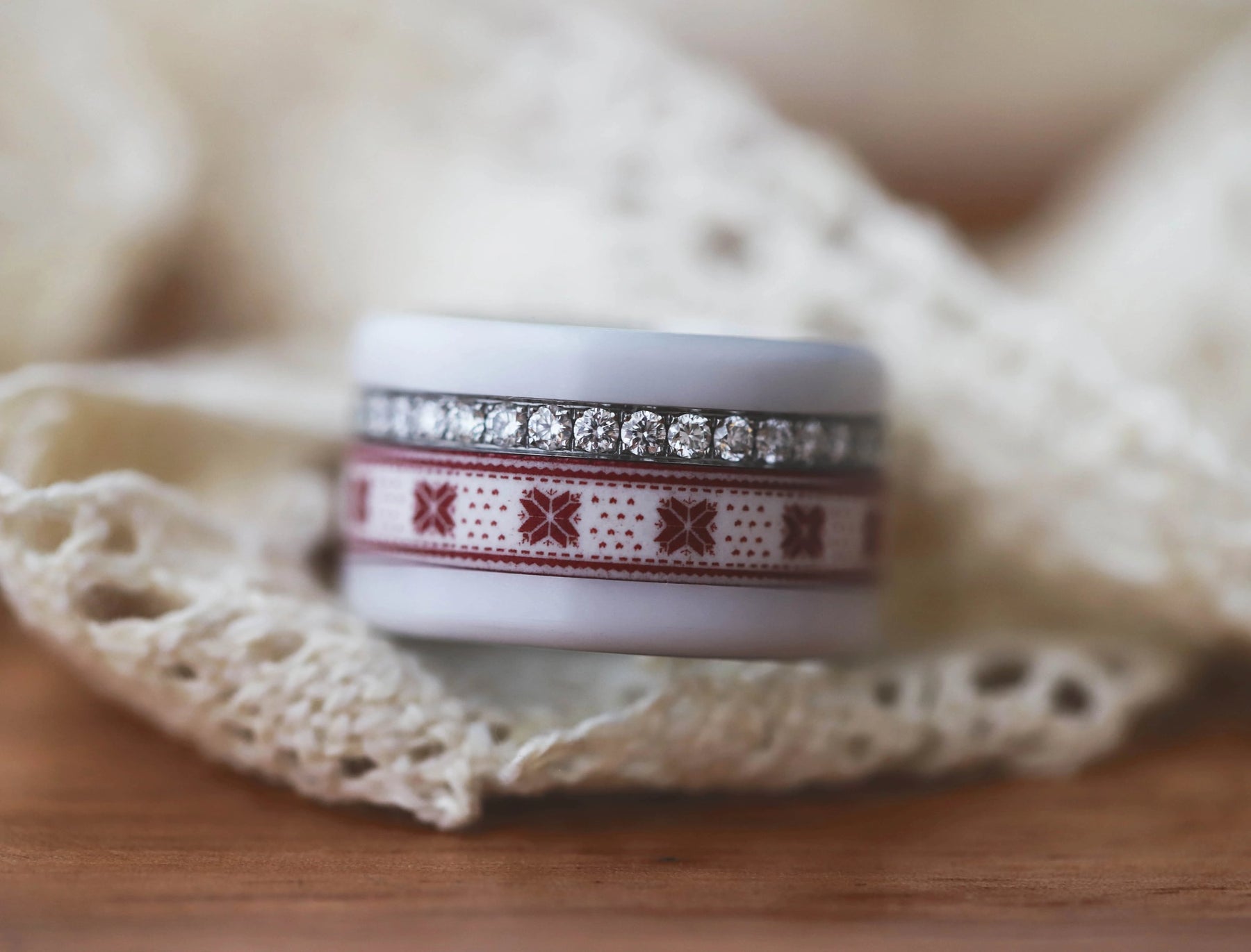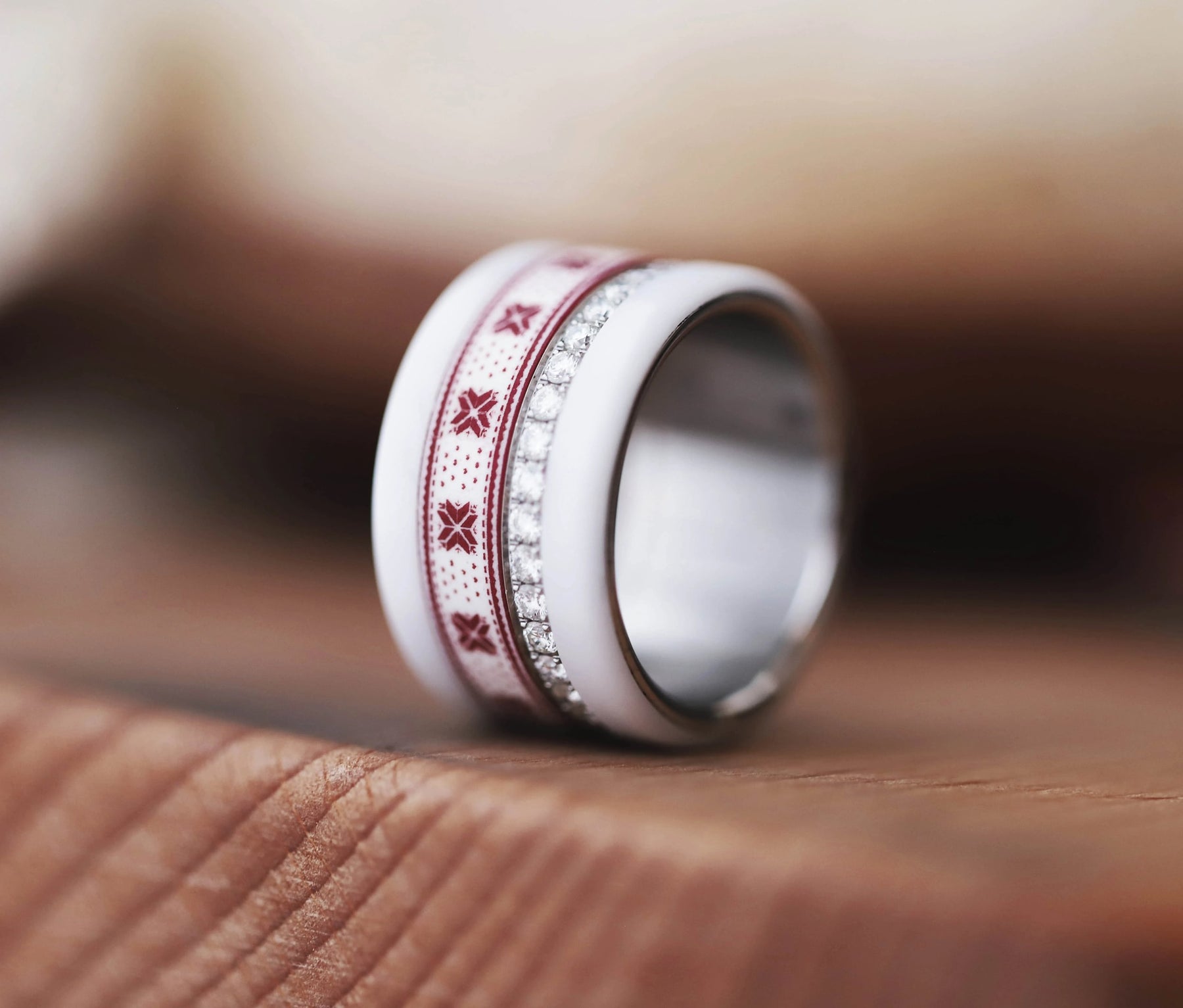 Inspiré par nos célèbres tricots de Noël, cet addon évoque immédiatement l'esprit festif de la saison de décembre. Son graphisme rappelle les motifs traditionnels des pulls de Noël, avec des couleurs bordeaux et blanches qui plongent instantanément dans l'univers chaleureux des fêtes. Nous vous suggérons de revêtir votre plus beau pull de Noël et d'assortir cette bague pour une soirée cocooning au coin du feu. Profitez de l'élégance et du confort que ce bijou apporte, rappelant les moments magiques de Noël et l'ambiance conviviale des soirées hivernales.