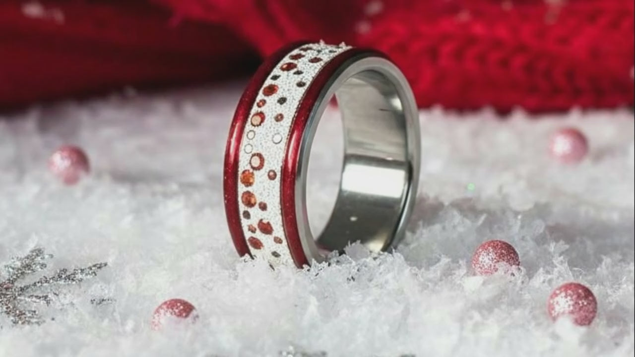 La Base XmaS, en émail rouge pailleté, capture tout l’esprit des fêtes de fin d’année.