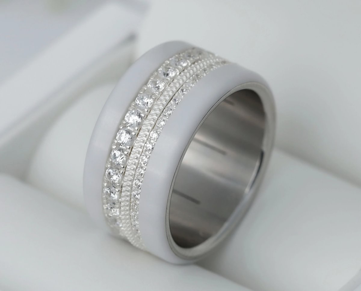 • Un anneau Medium Cœur Pur en argent 925, au design 3D délicat, orné de cœurs en émail blanc symbolisant la sincérité, la tendresse et la pureté.