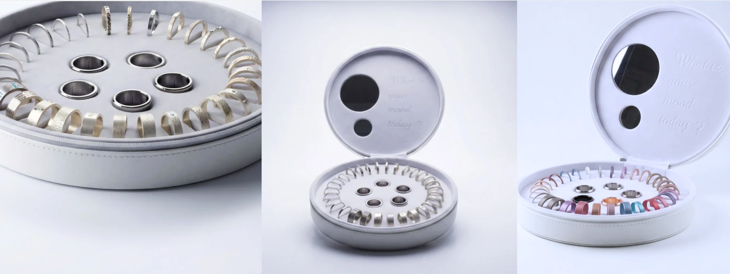 Jeder mood Ring besteht aus einer Fassung und Innenringen, die ausgewechselt werden können. Die Fassung kann dank seines Clip-Systems ganz leicht geöffnet werden, um die gewünschten Addons (Innenringe) einzusetzen. Der mood Ring ist angenehm zu tragen und wurde entwickelt, um unzählige Male geöffnet und geschlossen zu werden.