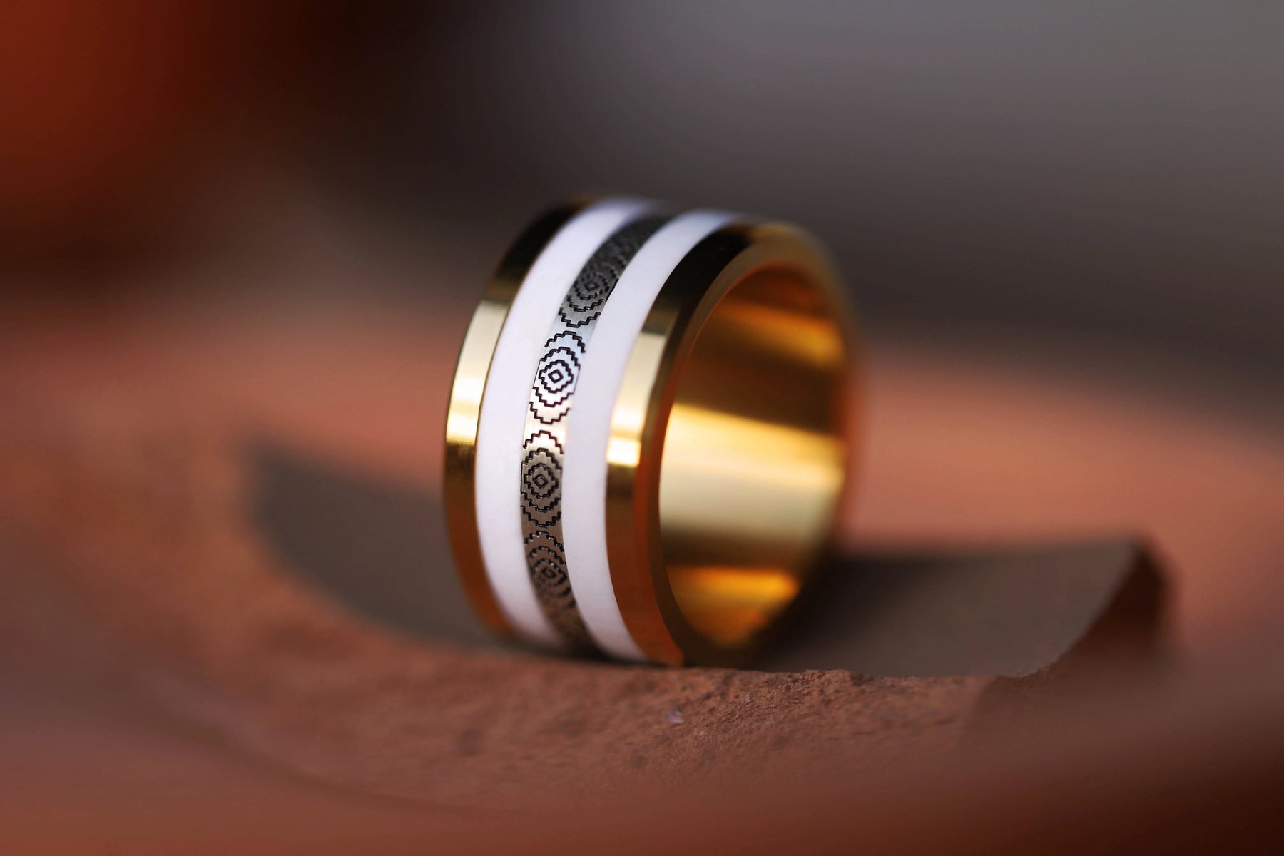 Um deine Ringgrösse zu bestimmen, nutze einen Faden, Zahnseide oder ein Stück Papier. Wickle es locker um den Fingerbereich, an dem du den Ring tragen möchtest, und markiere die Stelle, an der sich der Faden überlappt. Achte darauf, den Faden nicht zu fest zu ziehen, da der Ring später auch über deine Fingerglieder geschoben werden muss. Messe anschliessend die Länge des Fadens. Die gemessene Länge in Millimetern entspricht dem Innenumfang deines Rings.