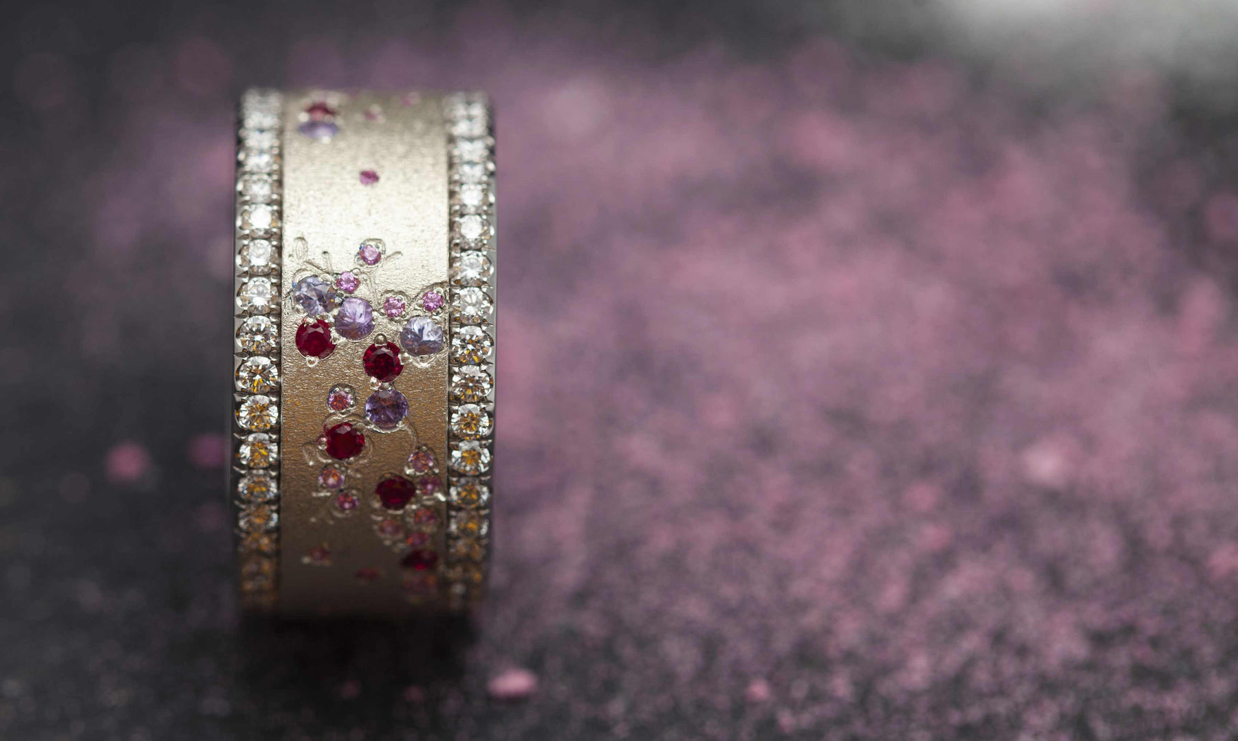 Dieses Addon ist mit zwölf 1,6mm Rubine, achtzehn 1,6mm hellvioletten Saphiren und sechsundvierzig 0,8mm hellvioletten Saphiren besetzt.