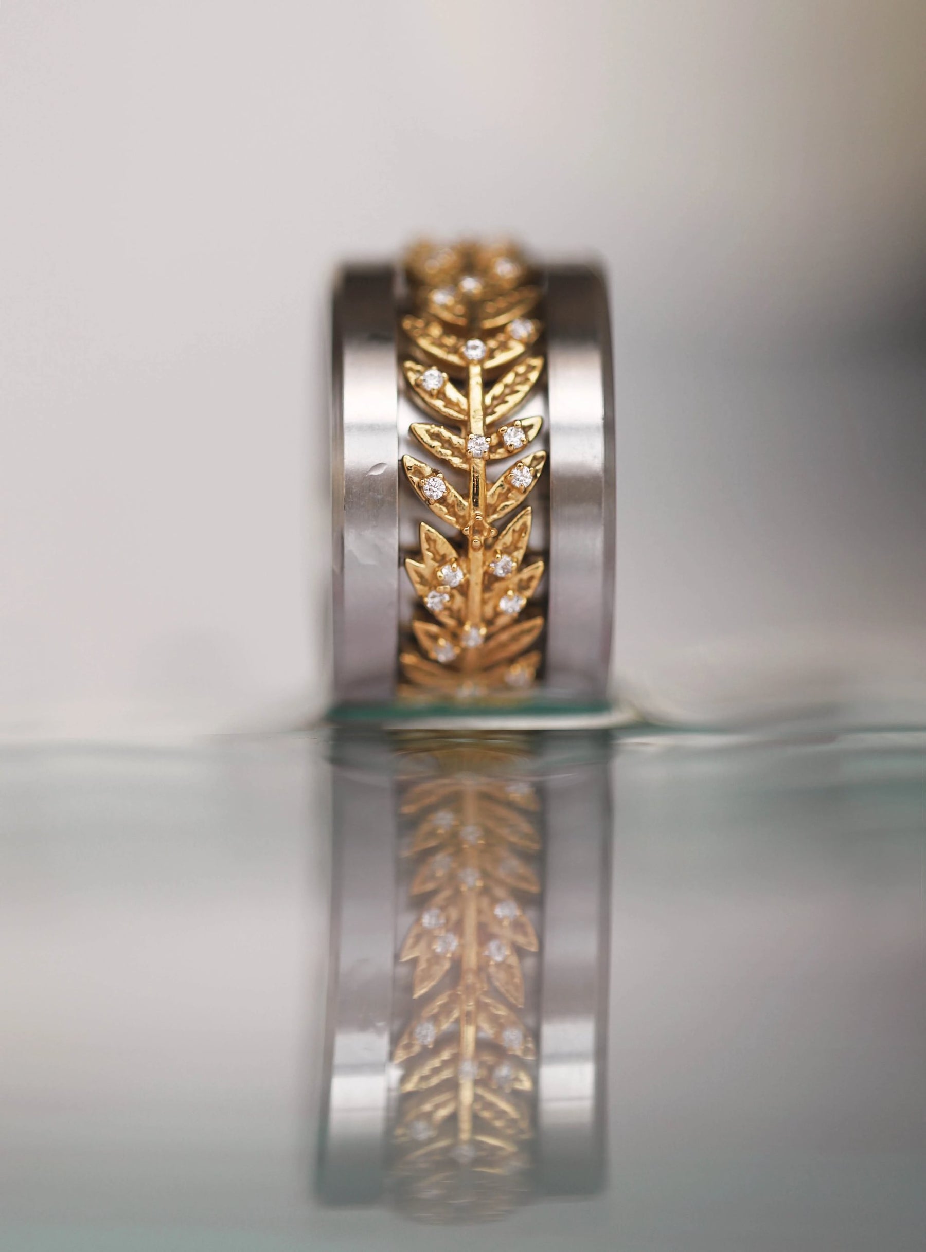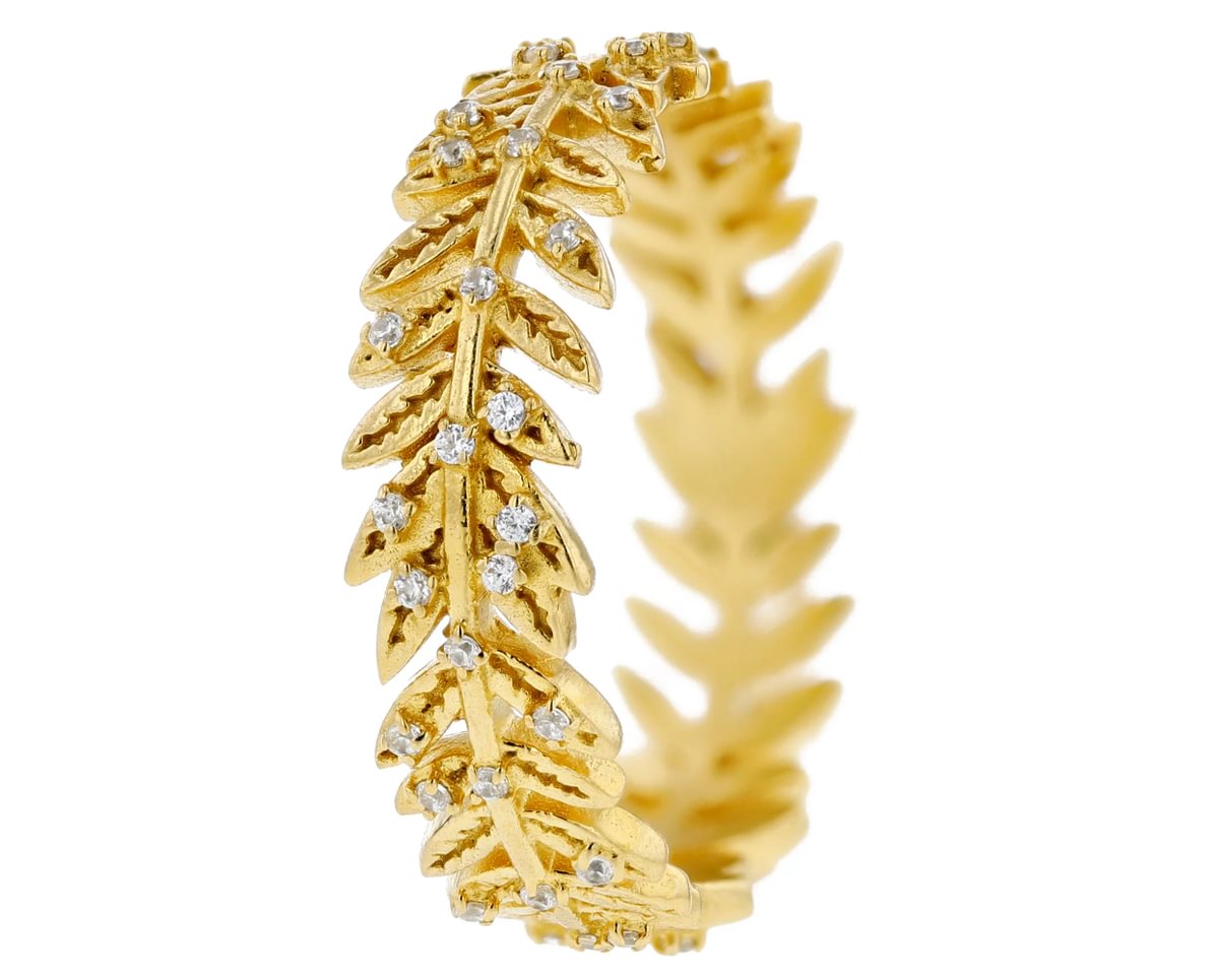 🍂 Addon aus Silber mit gelbgoldfarbener Beschichtung "3D Wreath of leaves" mit Zirkonia besetzt, für auswechselbaren mood Ring.🍂