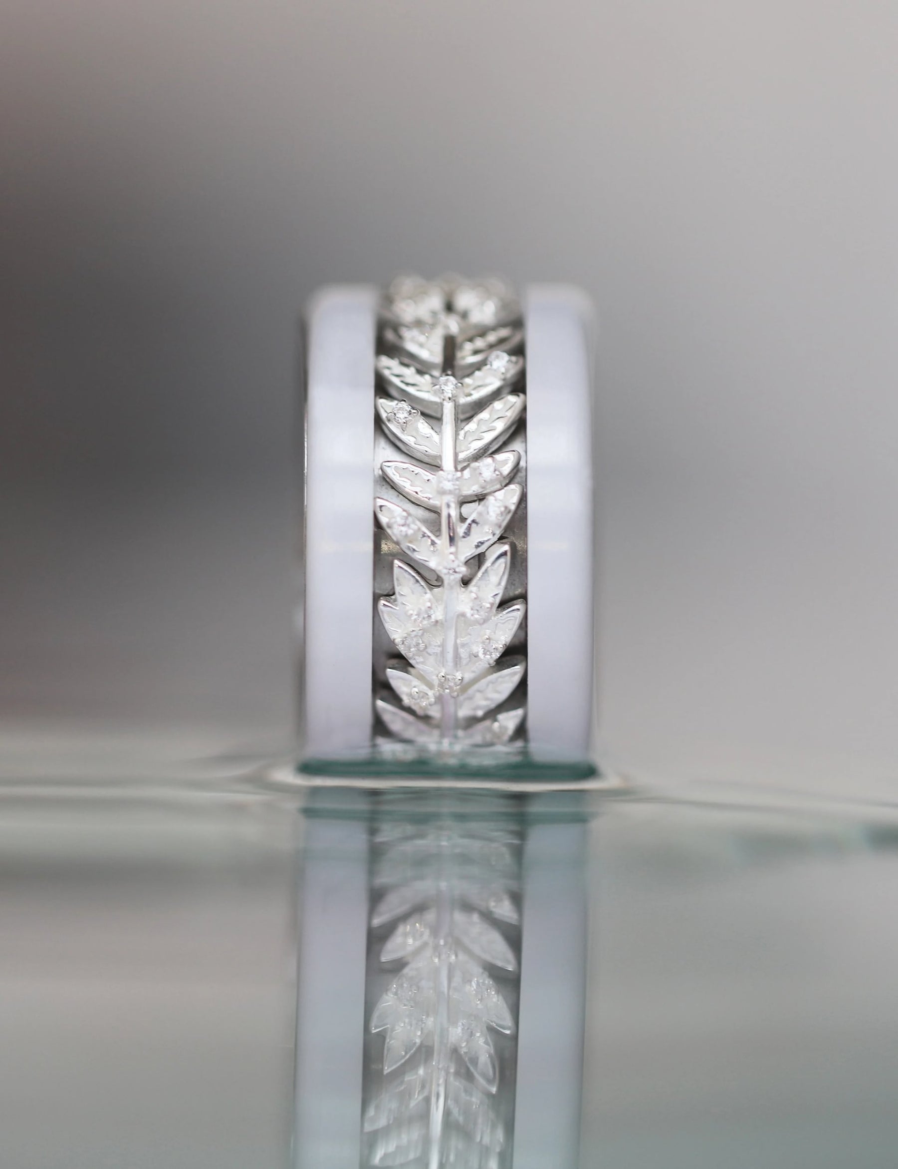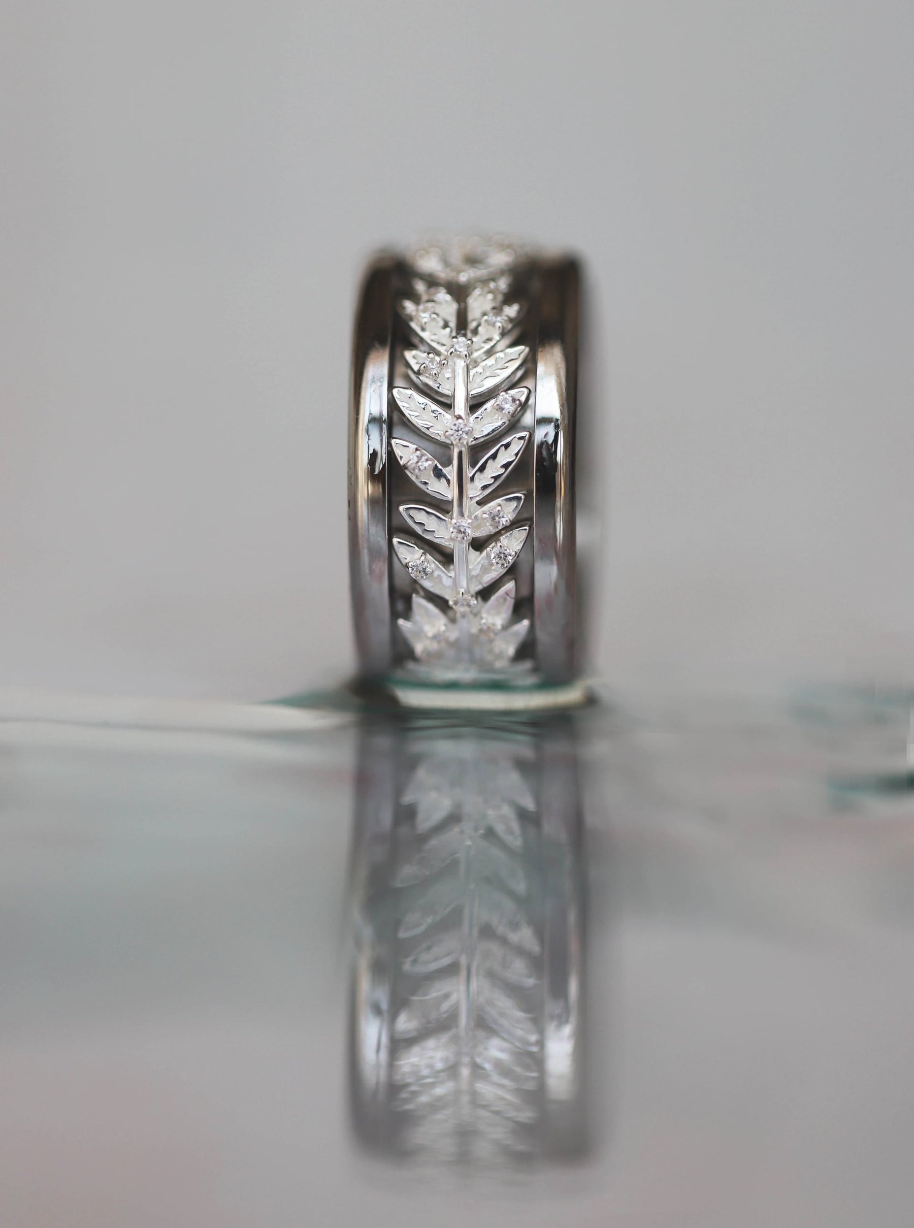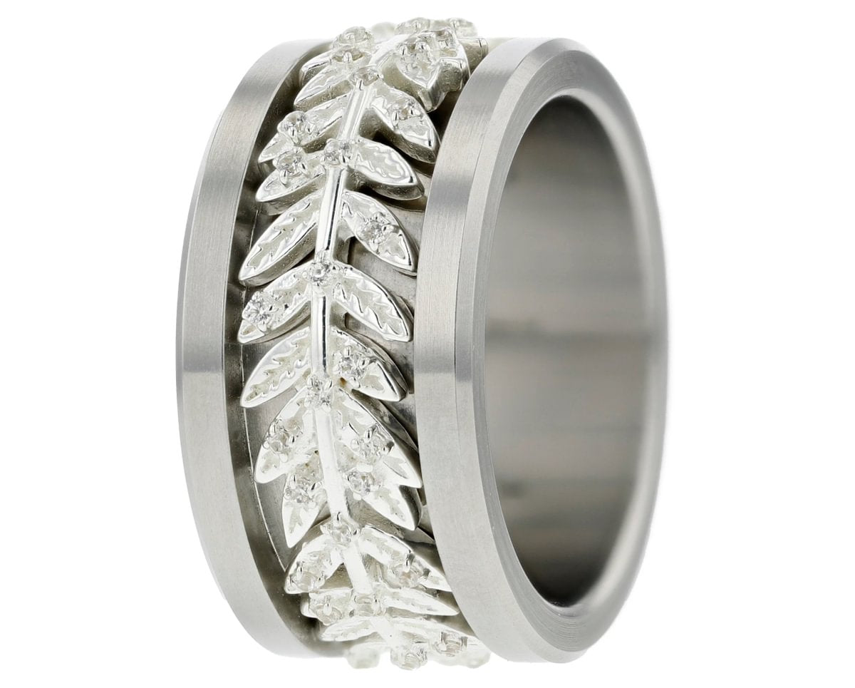 🍂 Addon aus Silber "3D Wreath of leaves" mit Zirkonia besetzt, für auswechselbaren mood Ring.🍂
