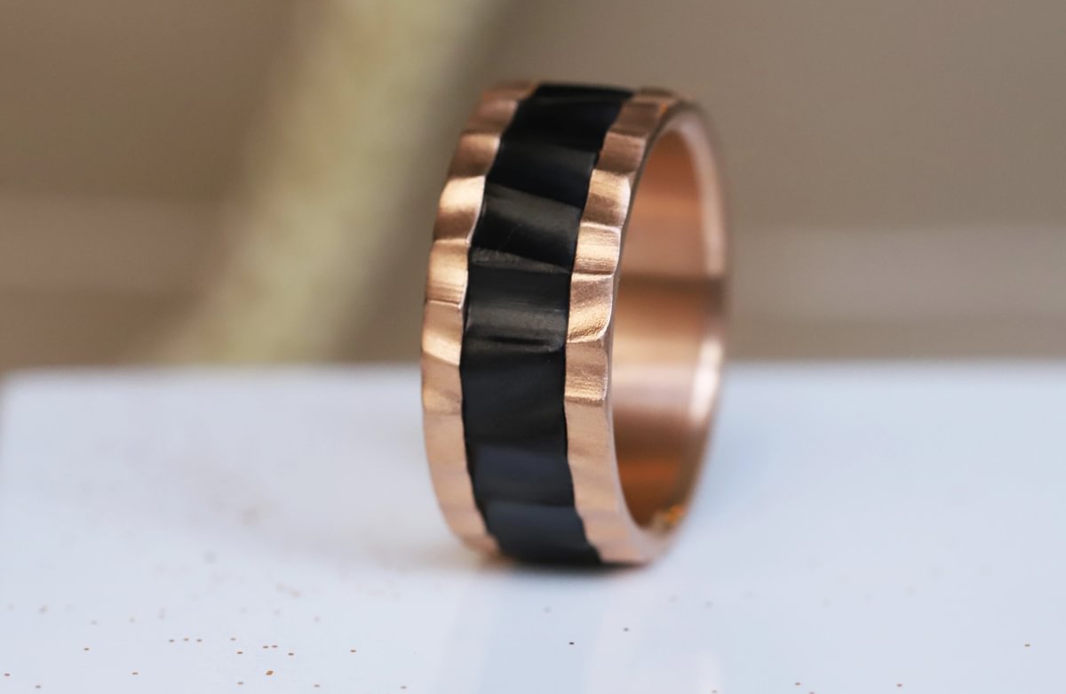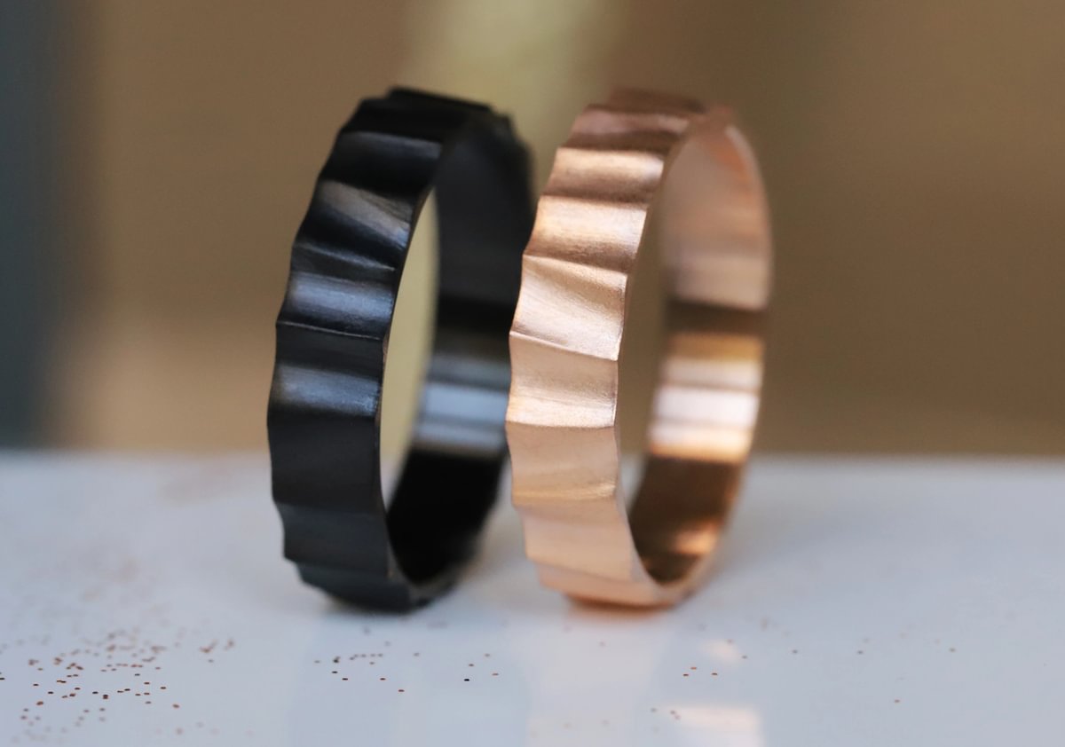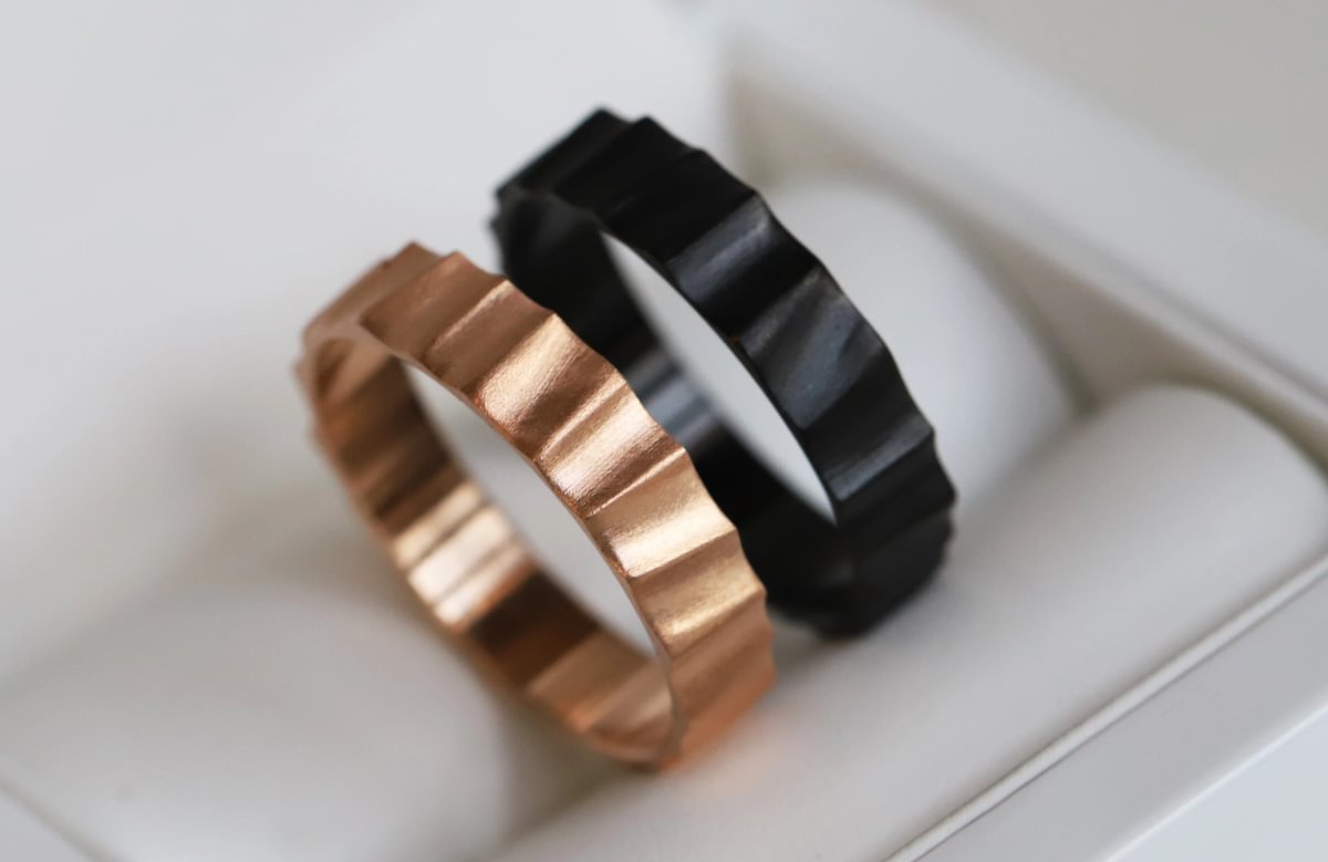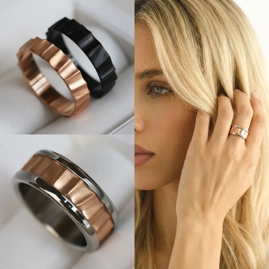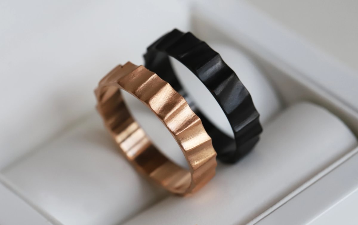 La rencontre du rose gold solaire et du black profond crée un dialogue puissant et équilibré. La chaleur lumineuse répond à la profondeur minérale, révélant une esthétique contrastée, libre et contemporaine. Deux matières, deux énergies, réunies dans une même vision.