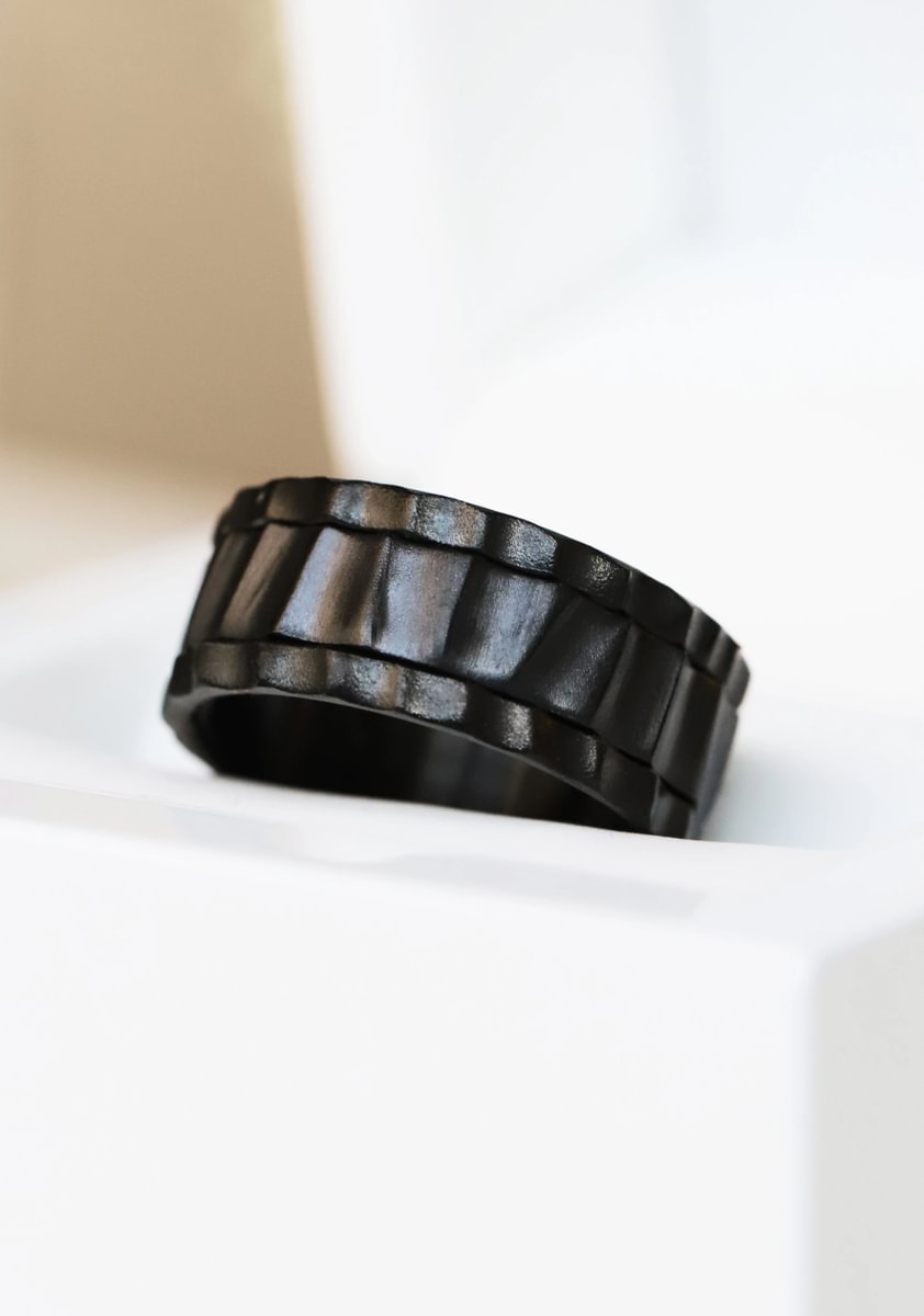 Grâce au système d’addons Mood, le coffret DÉSERT permet de composer une bague graphique et expressive, pensée pour celles et ceux qui avancent avec instinct, portés par la force des éléments. Les lignes drapées captent la lumière différemment à chaque geste, dévoilant une texture organique, presque textile, comme un voile minéral façonné par le vent.