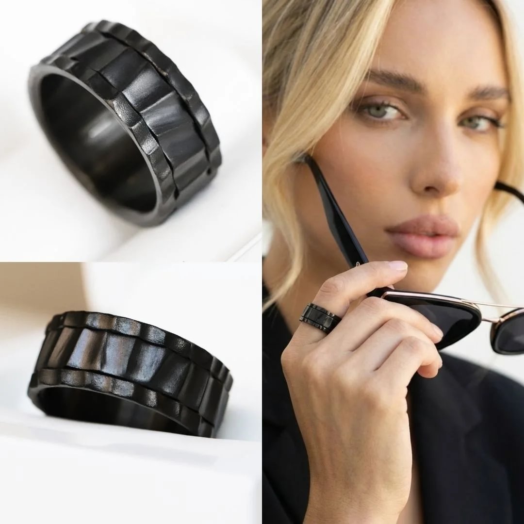 Lâacier black rĂ©vĂšle une intensitĂ© minĂ©rale et magnĂ©tique, soulignant la force brute de la matiĂšre travaillĂ©e. Une esthĂ©tique puissante et Ă©purĂ©e, oĂč le caractĂšre sâexprime sans artifice, entre profondeur, modernitĂ© et Ă©lĂ©gance naturelle.