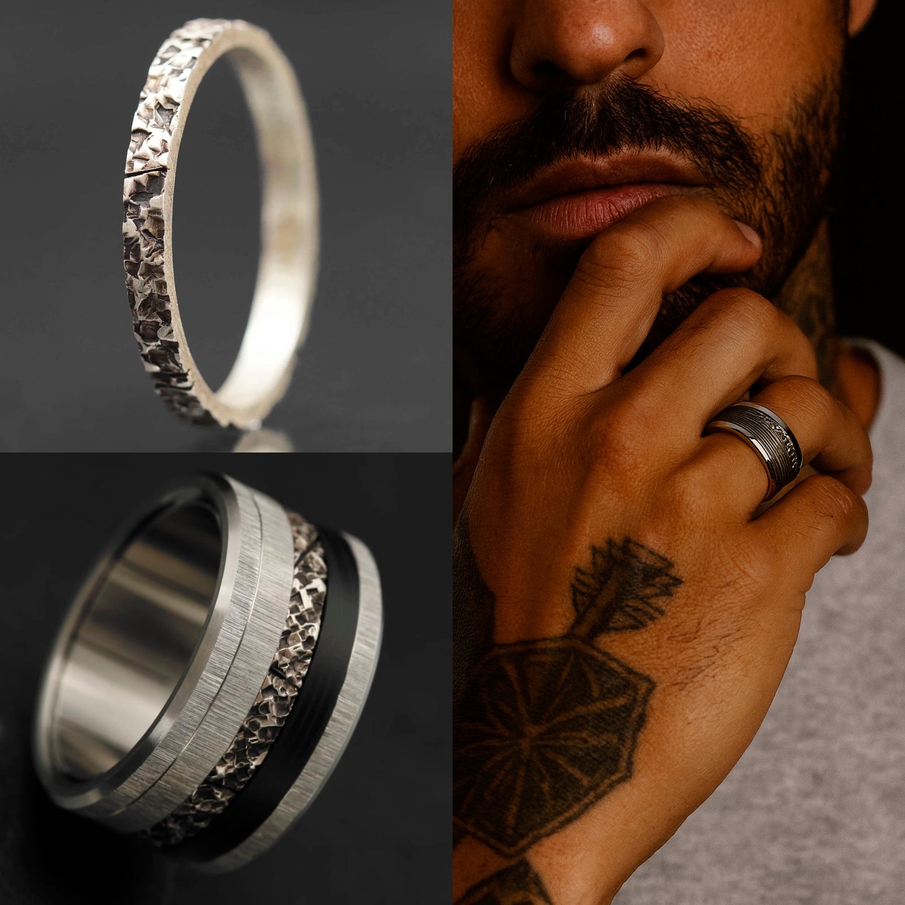 Medium Addon "Rock" aus Silber (Originalversion). Der Unterschied zwischen den beiden Versionen? Es wurden wurden verschiedene Werkzeuge und eine unterschiedliche Hammertechnik verwendet, so dass eine Version glatter als die andere ist.