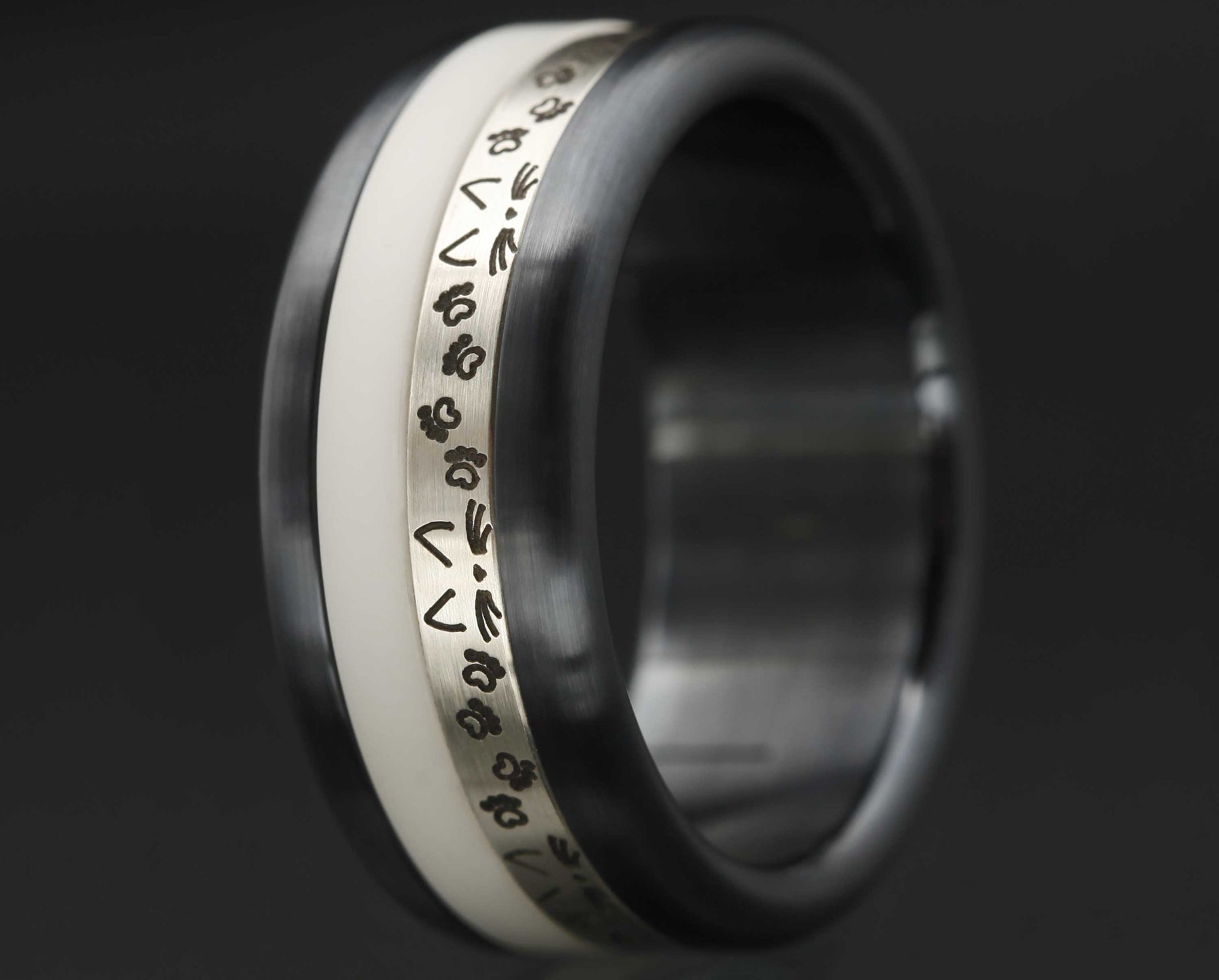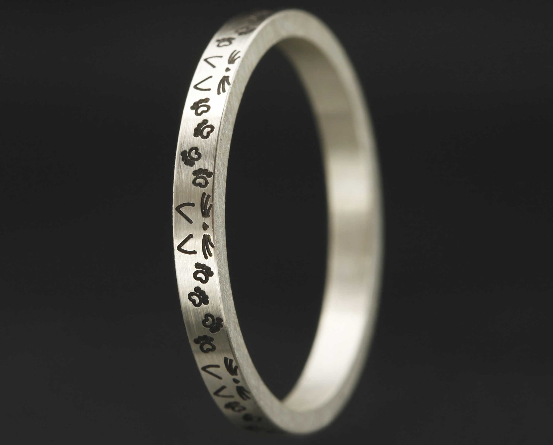 La première version reçue était gravée de façon trop large, les empreintes de pattes formaient une seule tache. Je l’ai fait échanger, mais même sur une version mieux gravée les pattes sont trop petites pour qu’on puisse voir à l’oeil nu ce que ça représente.