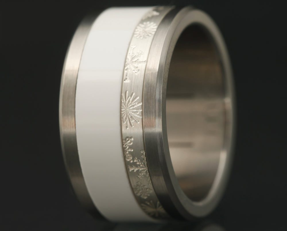Medium aus geknittertem Silber mit Diamanten besetzt
