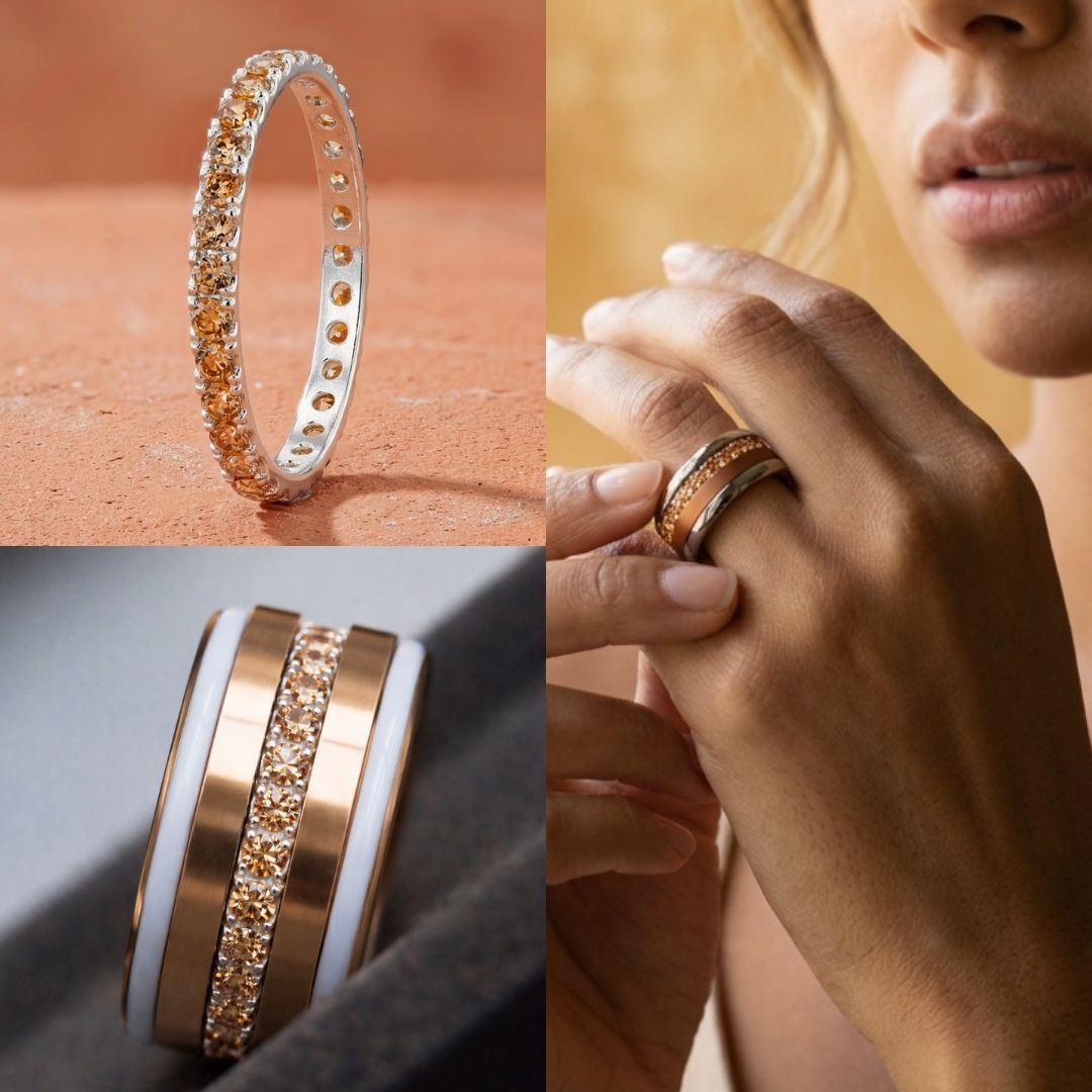 💍 Innenring (Medium Addon) „Champagner Aura“ aus 925er Silber mit champagner farbigen Zirkonia-Steinen besetzt