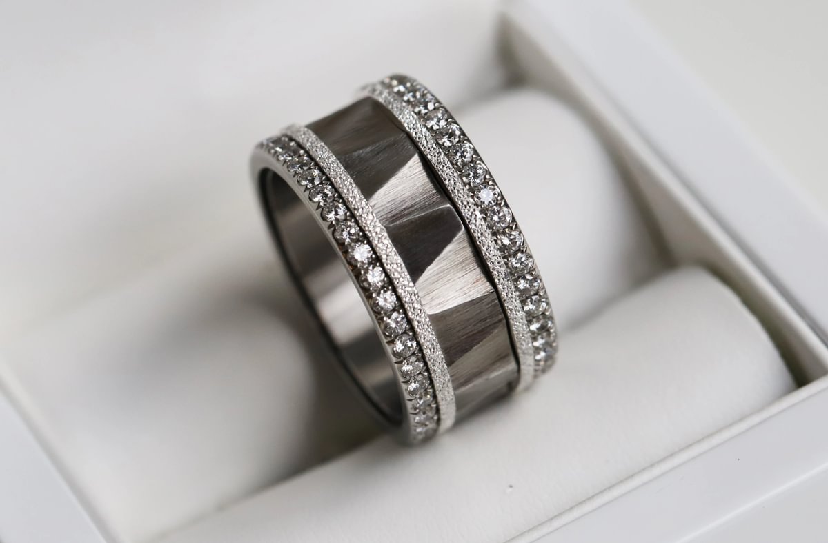 2/3 Addib aus poliertem Edelstahl, von unseren mood Juwelierinnen entworfen und handgefertigt.