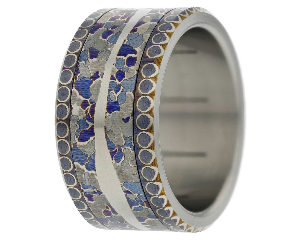 Aufgrund der Widerstandsfähigkeit von Titan kann diese Fassung nicht mit Diamanten oder Edelsteinen besetzt werden. Die Farbe von Titan kann je nach Verwendung variieren (jede Fassung ist einzigartig): Die Farbe kann von blau, über dunkelblau, bis hin zu violett und sogar braun variieren. Durch Kontakt mit der Haut oder verschiedenen Produkten kann sich die Farbe der Fassung verändern. Wie bei allen Titanteilen ist die Fassung empfindlich gegen Kratzer. Es wird nicht empfohlen, ihn neben einem anderen Ring zu tragen.
