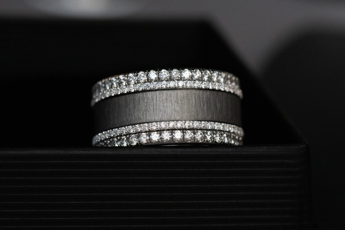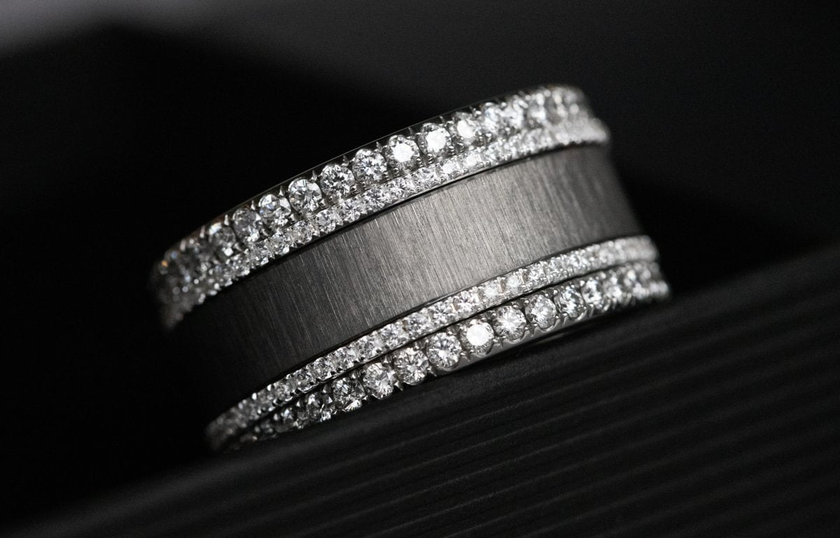 Entdecke unsere Kollektion Geknittert Anthrazit, eine moderne Neuinterpretation eines unserer grössten Bestseller. Von unseren Juwelierinnen strukturierter Edeltahl, der wie ein lebendiges Material bearbeitet wurde: Jede Falte fängt das Licht ein, jedes Relief erzeugt ein einzigartiges Schattenspiel.