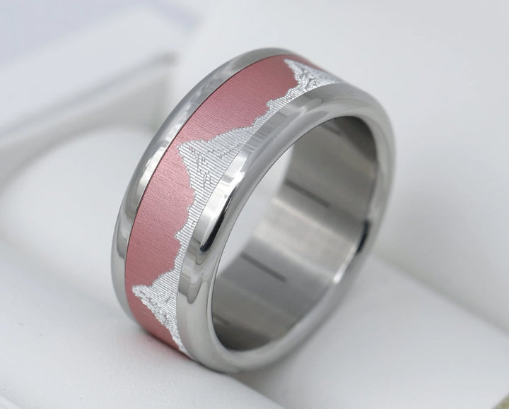 Dieser Ring mit auswechselbarem Ring, in den das berühmte Matterhorn eingraviert ist, ist ein aussergewöhnliches Schmuckstück, das mit Sorgfalt entworfen und in der Schweiz hergestellt wurde - ein Garant für Qualität, Know-how und Präzision. Aus 316L-Edelstahl gefertigt, vereint er Robustheit, Korrosionsbeständigkeit und zeitlosen Glanz.