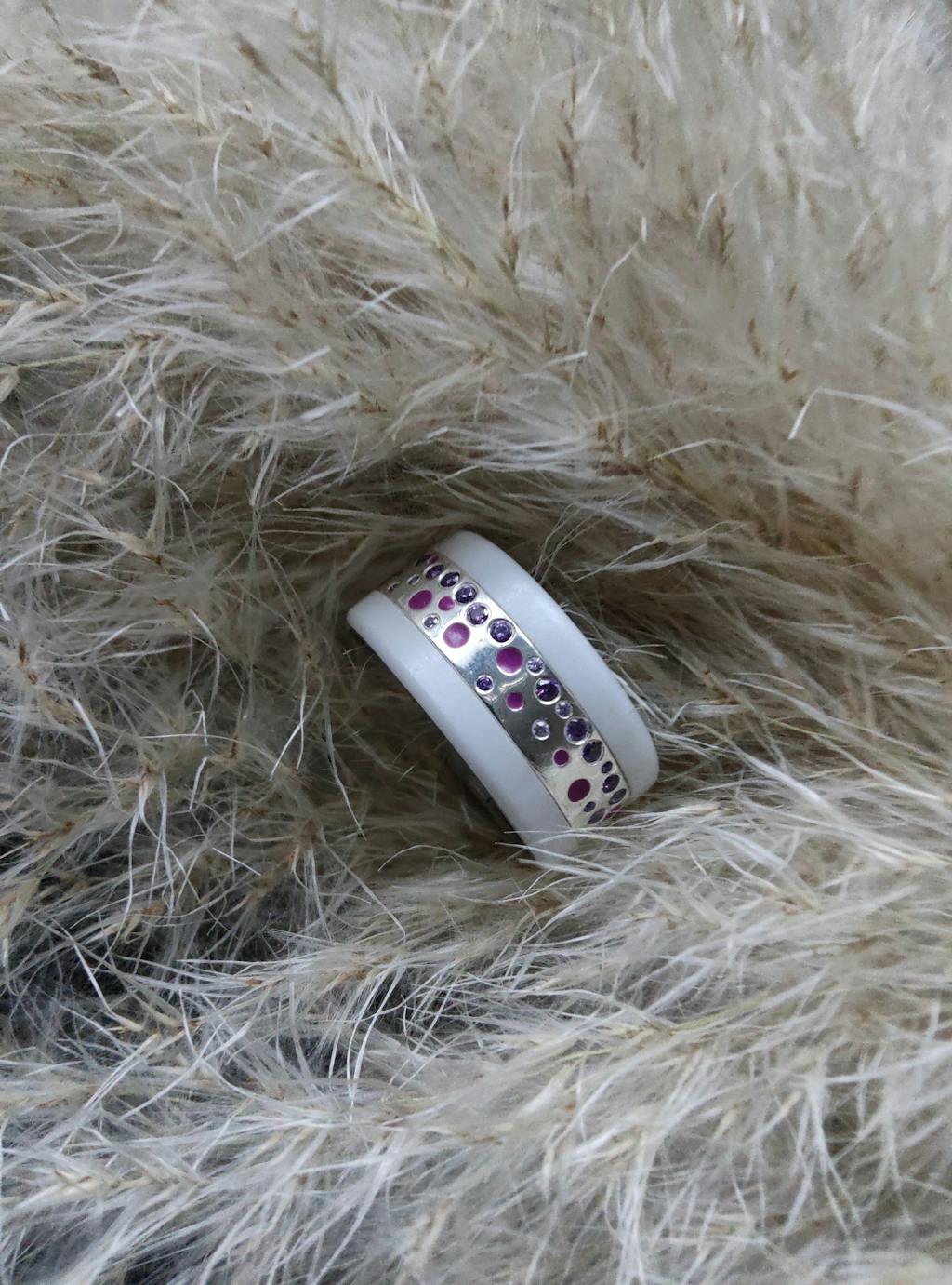 Innenring (2/3 Addon) "Willow Purple" aus 925er Silber mit Zirkonia Steinen und Emaille Tupfer besetz, für den auswechselbaren mood Ring