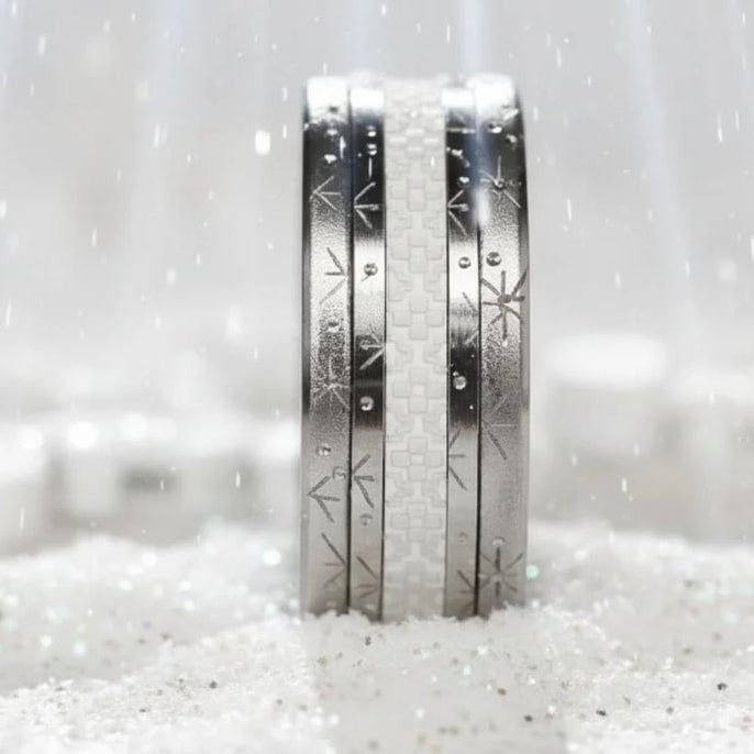 Dank des Systems austauschbarer Addons kannst du je nach deiner momentanen Inspiration vielfältige Kombinationen kreieren. Ob schlicht, funkelnd oder zart mattiert – Dein Ring verwandelt sich im Rhythmus des Winters und deiner Persönlichkeit.