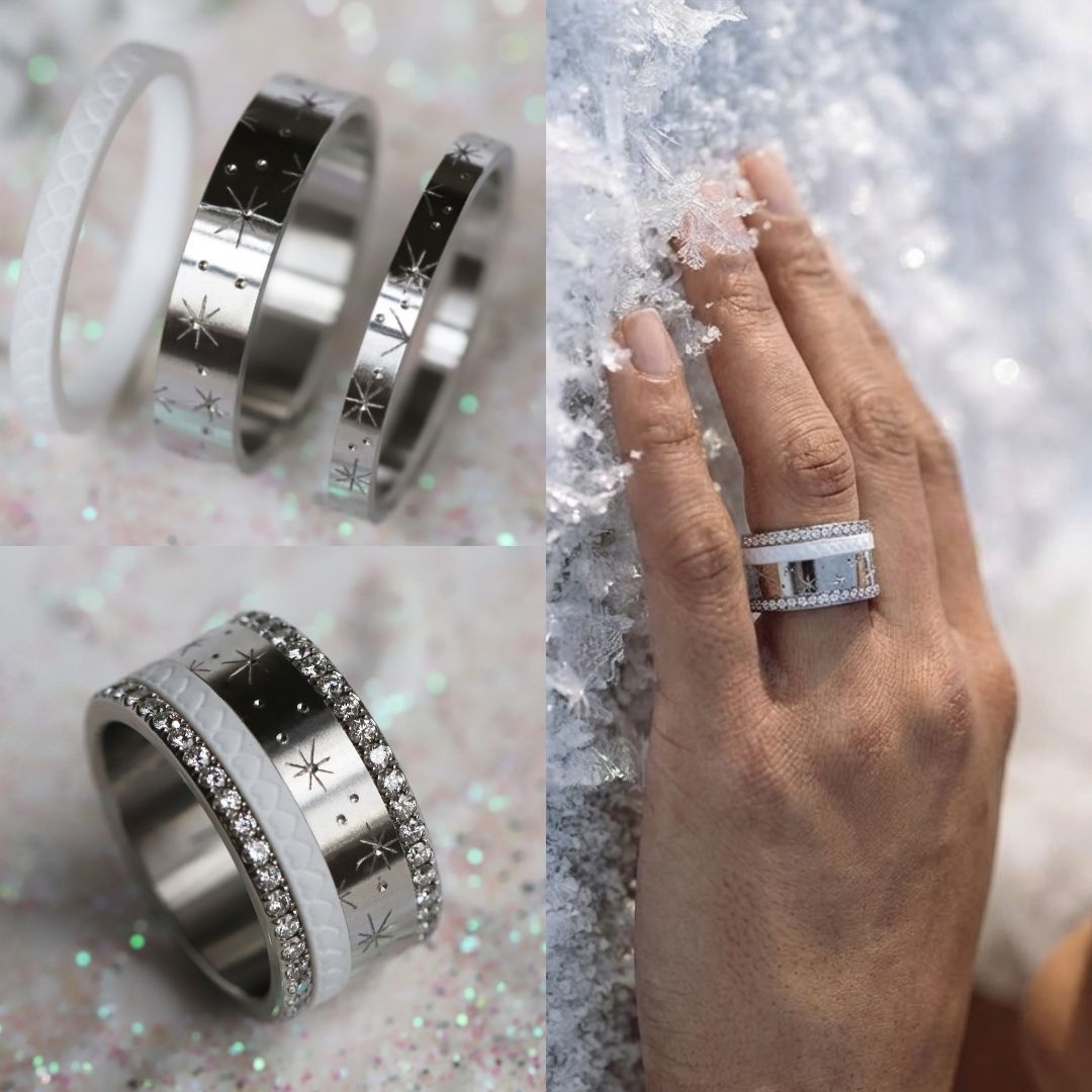 Dank des Systems austauschbarer Addons können Sie unendlich viele Kombinationen ganz nach deiner momentanen Stimmung kreieren. Ob pur, zart oder strahlend – Dein Ring entwickelt sich mit deinen Inspirationen weiter und spiegelt deine Interpretation des Winters wider.