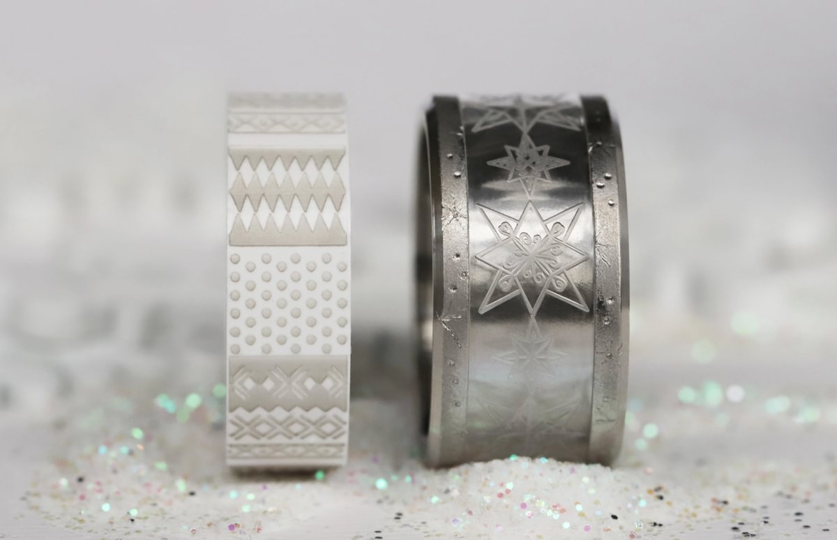 Seine sandfarbene Fassung „Flocken” mit seiner feinen Struktur erinnert an frischen Schnee, der sich in zarten Flocken niederlässt. Das durchscheinende Addon „6. Dezember” fängt das Licht wie ein Eisfragment ein, während „Anya” aus weissem Polymer für reine, beruhigende Klarheit sorgt.
