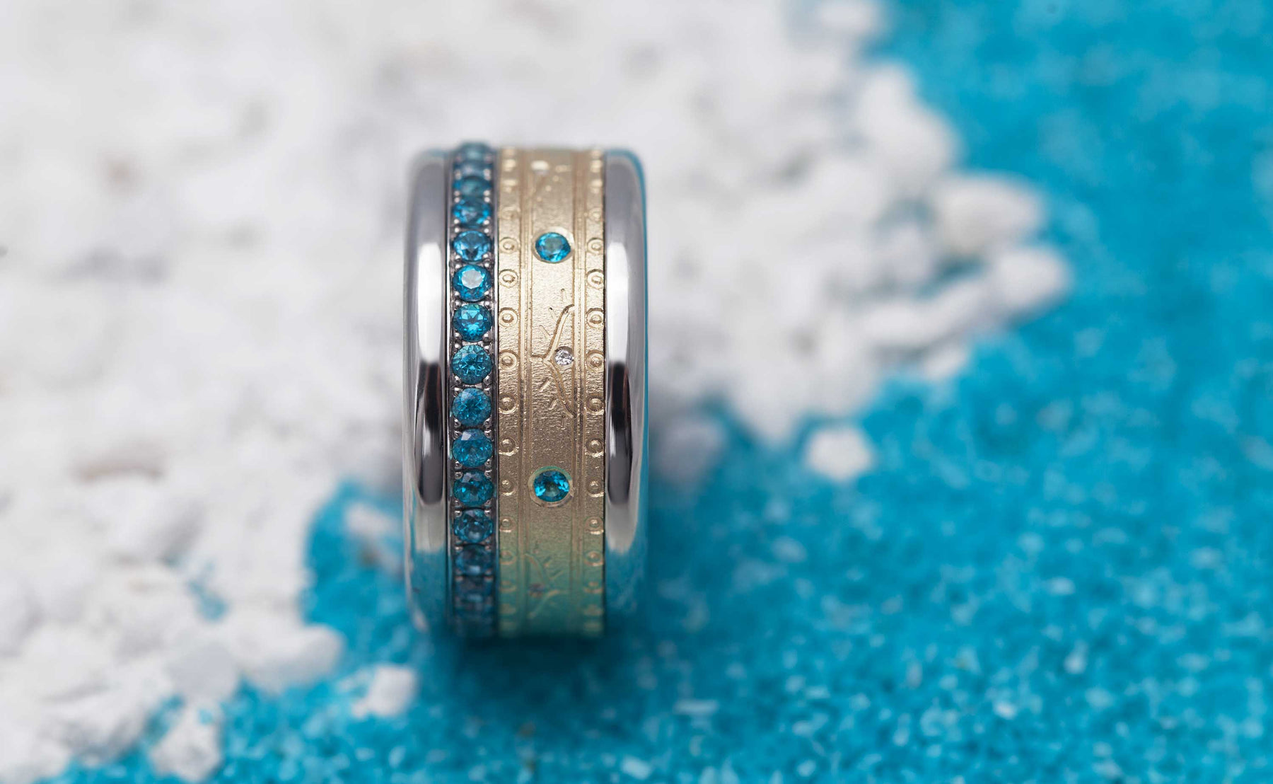 Dieses Addon ist mit sechs 1,75 mm Topasen und sechs 0,8 mm Diamanten besetzt. Die Steine sind Teil des Designs des Addons, es ist nicht möglich, sie zu ersetzen oder zu entfernen.