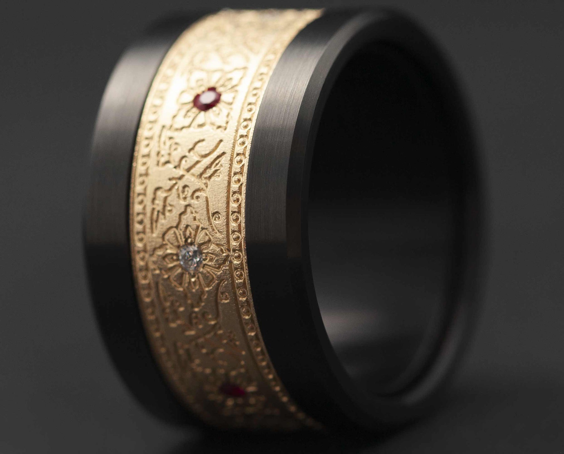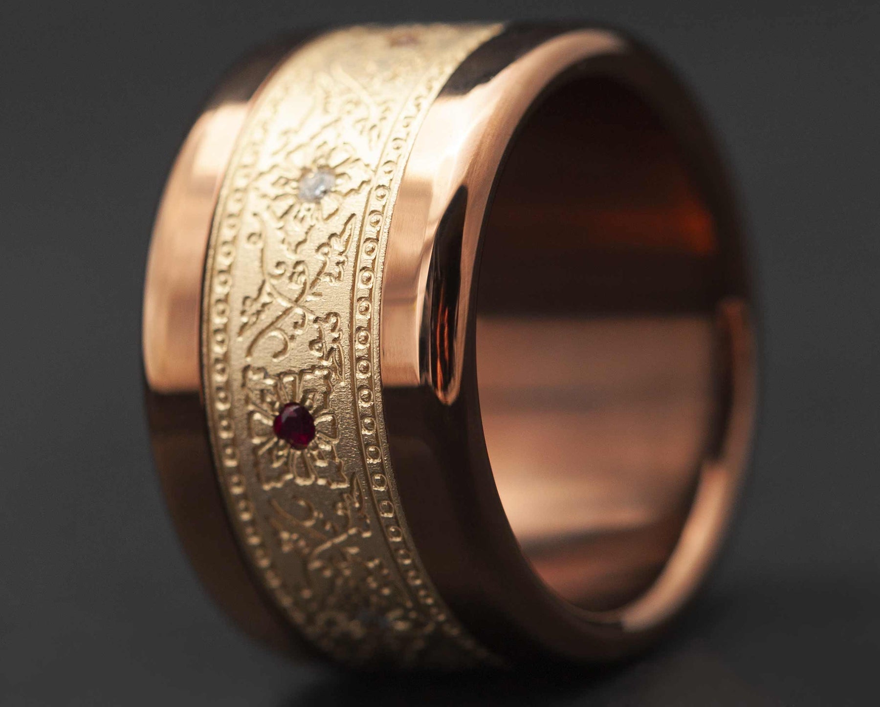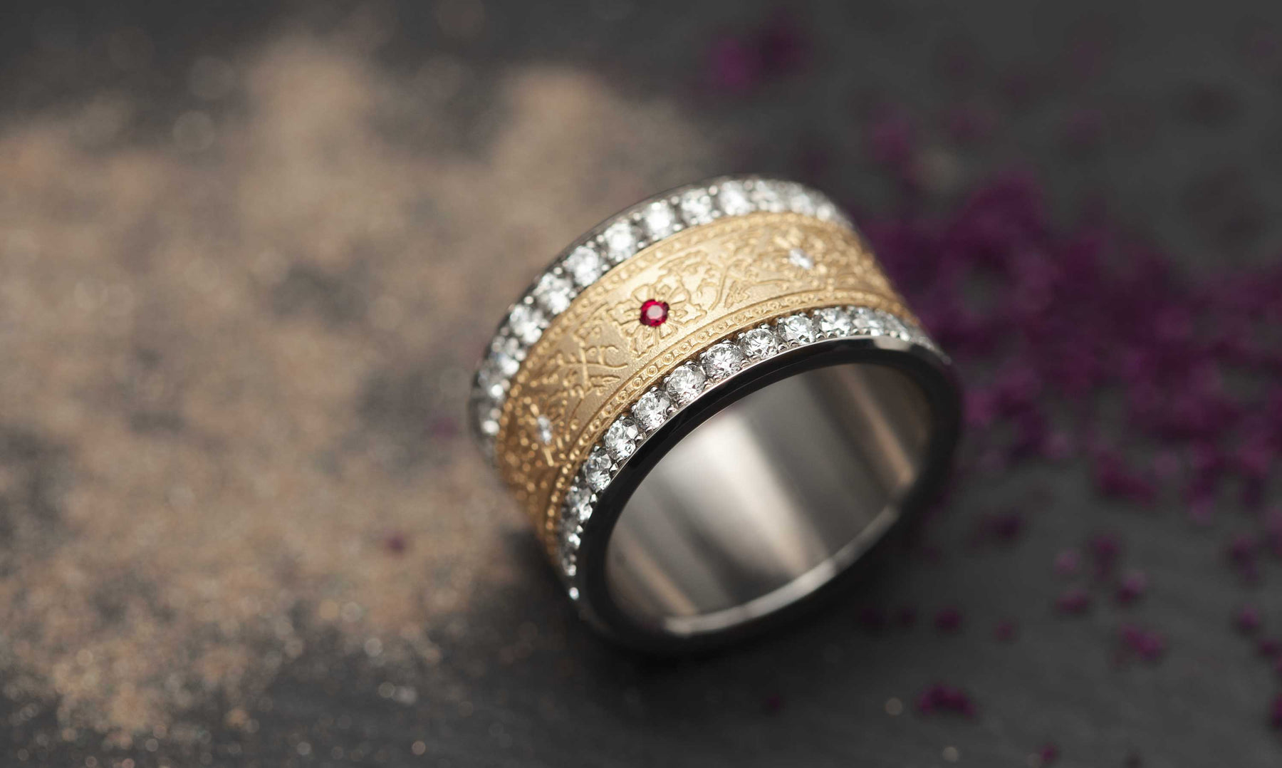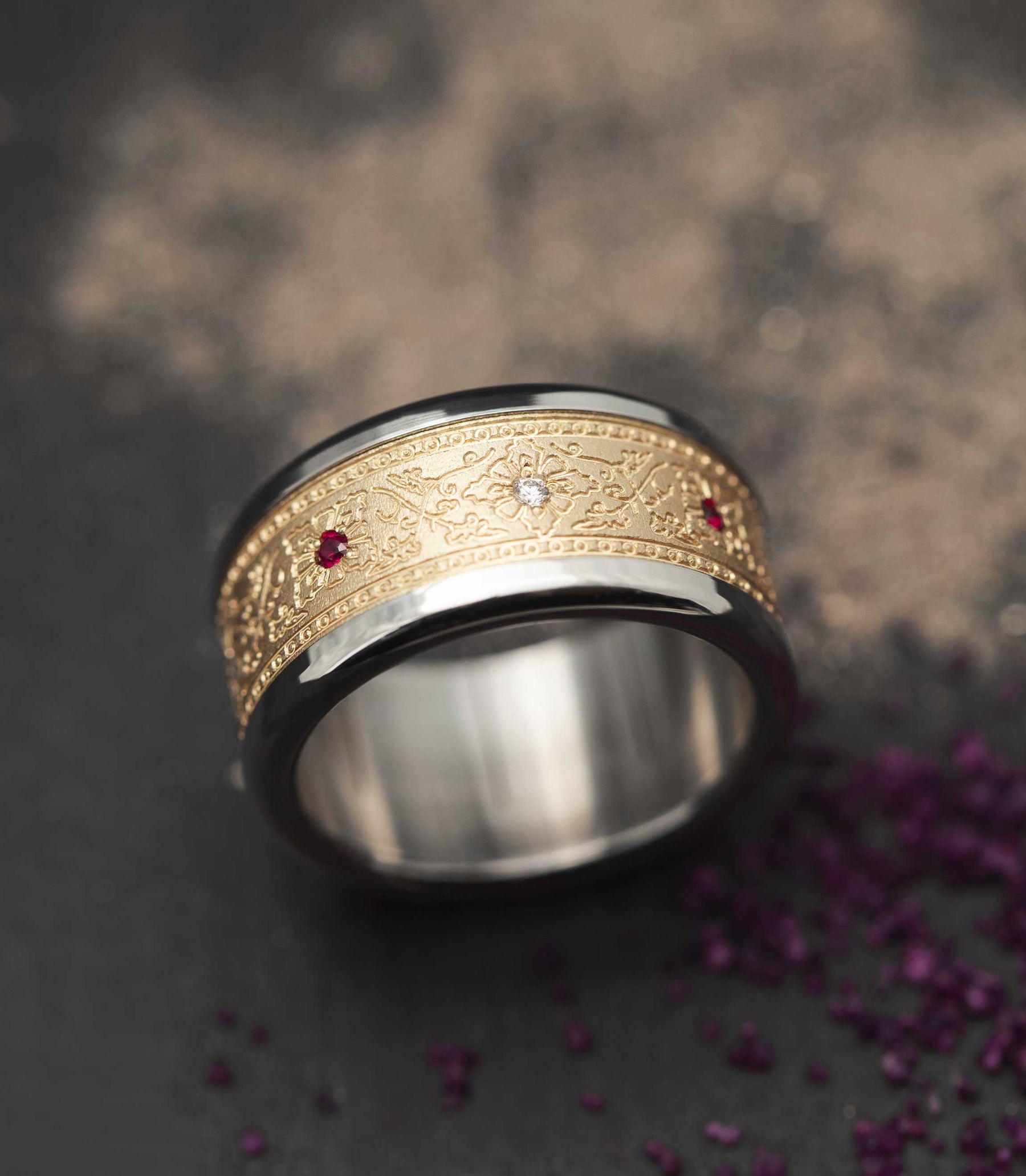 Addon aus abgestecktem Gelbgold mit 4 Rubinen und 4 Diamanten besetzt, "Flash Thailand Nr.47" aus der "Thailand" Flash Kollektion