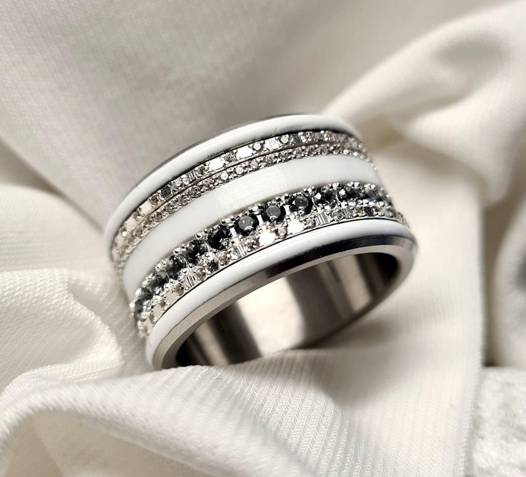 📸 Unverbindliches Foto – Nur der mit hellgrauen Zirkonia Steine besetzte Ring ist im Angebot enthalten.