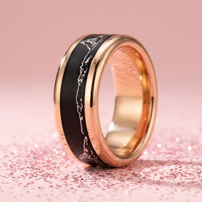 Dieses Ring-Set besteht aus einer Extra Small Rotgold abgerundete, polierte Fassung (9mm) und einem 2/3 Addon aus Aluminium "Zermatt City", Farbe nach Wahl.