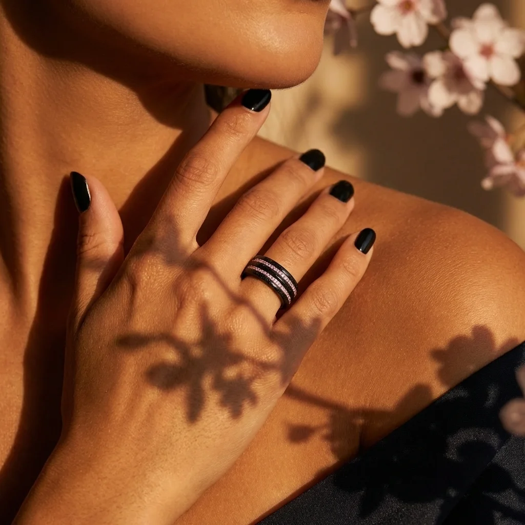 Er passt ebenso gut zu einem minimalistischen Outfit wie zu einem markanteren Look – stets mit jener magnetischen Eleganz, die der Nacht eigen ist.