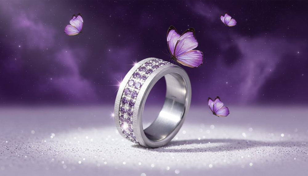 Anneau (deux tiers) "Willow" en argent glitter serti de zircons pour bague mood interchangeable