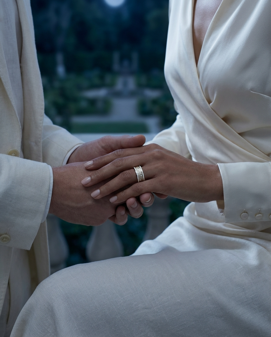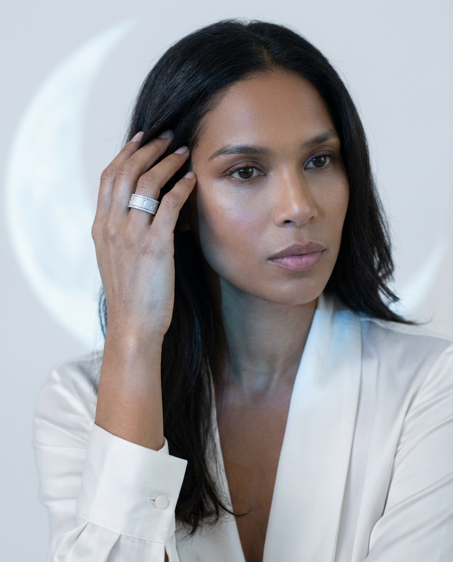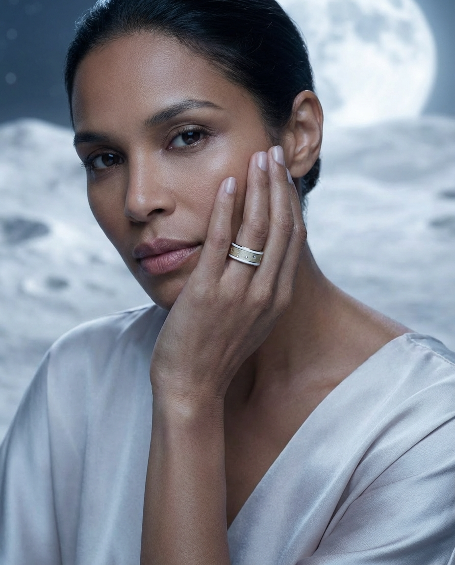 Made from 925 sterling silver, hammered and handcrafted by our jewelers, this addon evokes the surface of the moon and its craters.