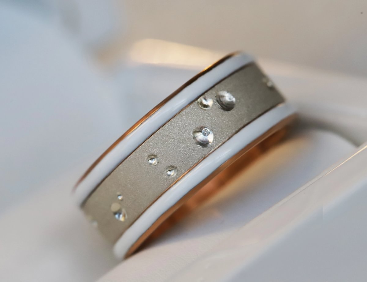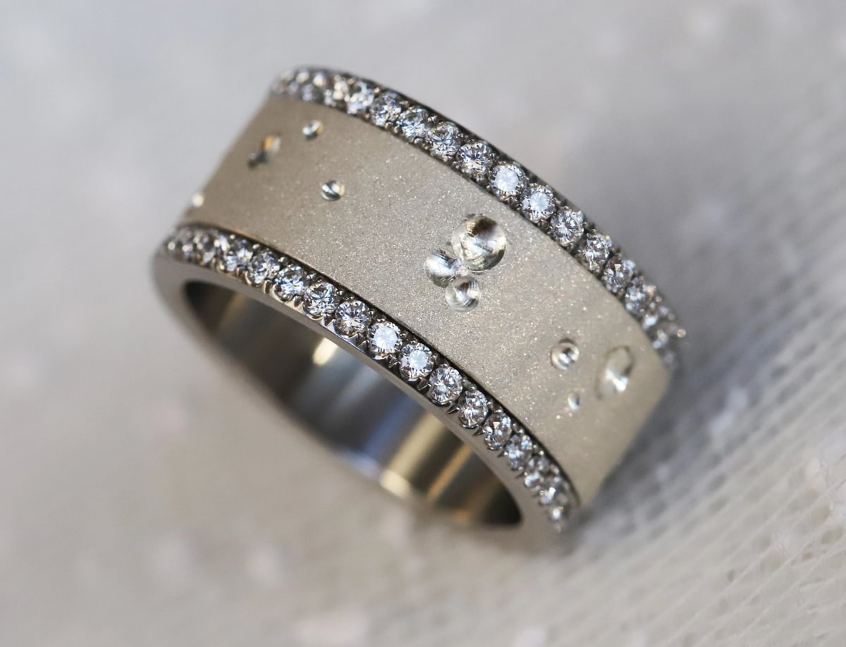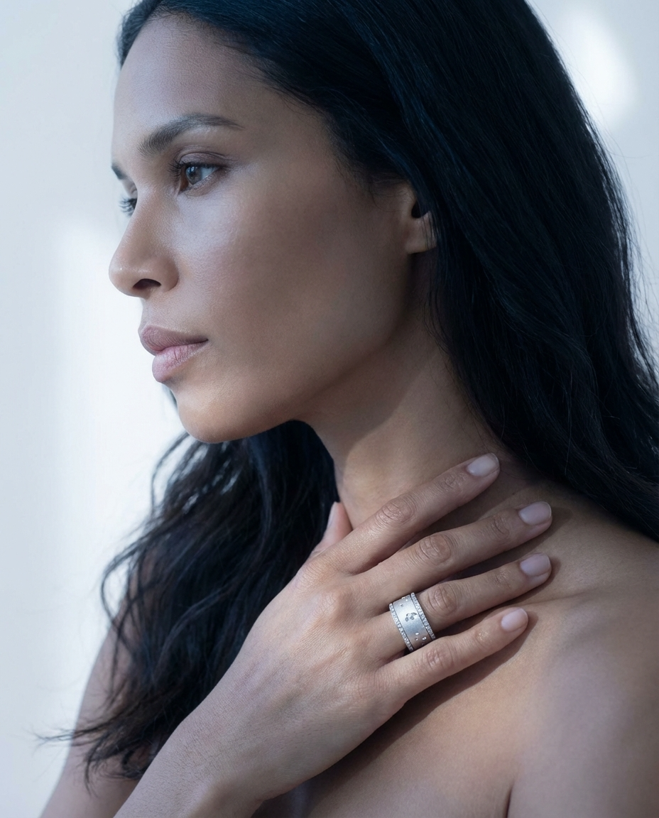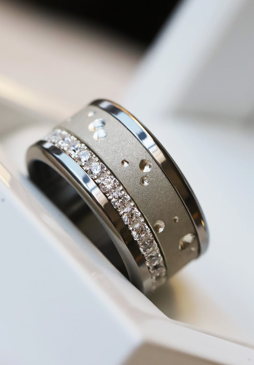Made from 925 sterling silver, hammered and handcrafted by our jewelers, this addon evokes the surface of the moon and its craters.