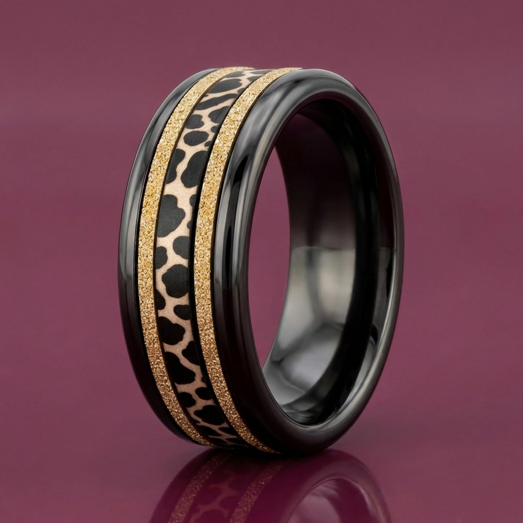 Le contraste du noir poli, la sophistication du léopard, la douceur feutrée de la Brume d’Automne et l’éclat subtil des minis gold et black créent un équilibre parfait entre caractère et raffinement.