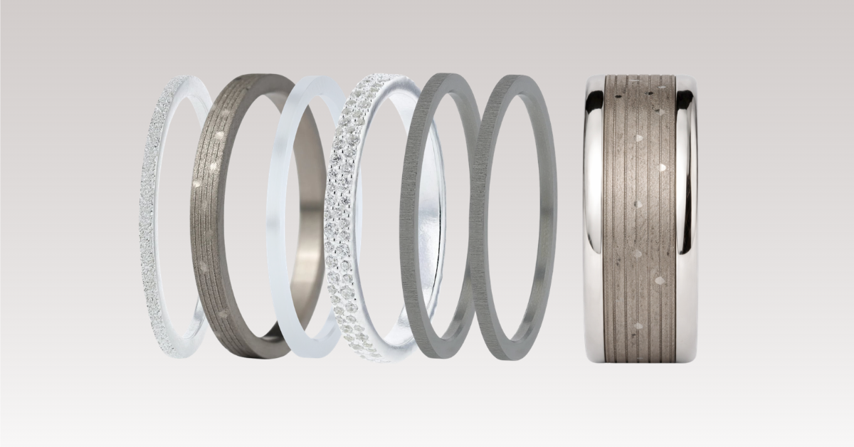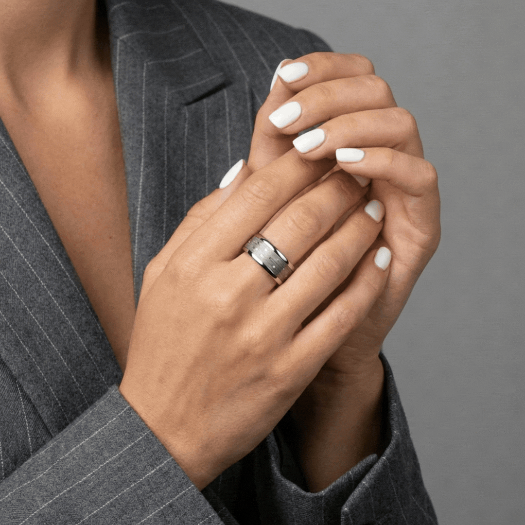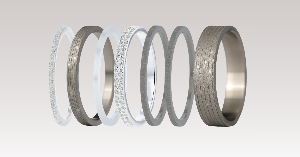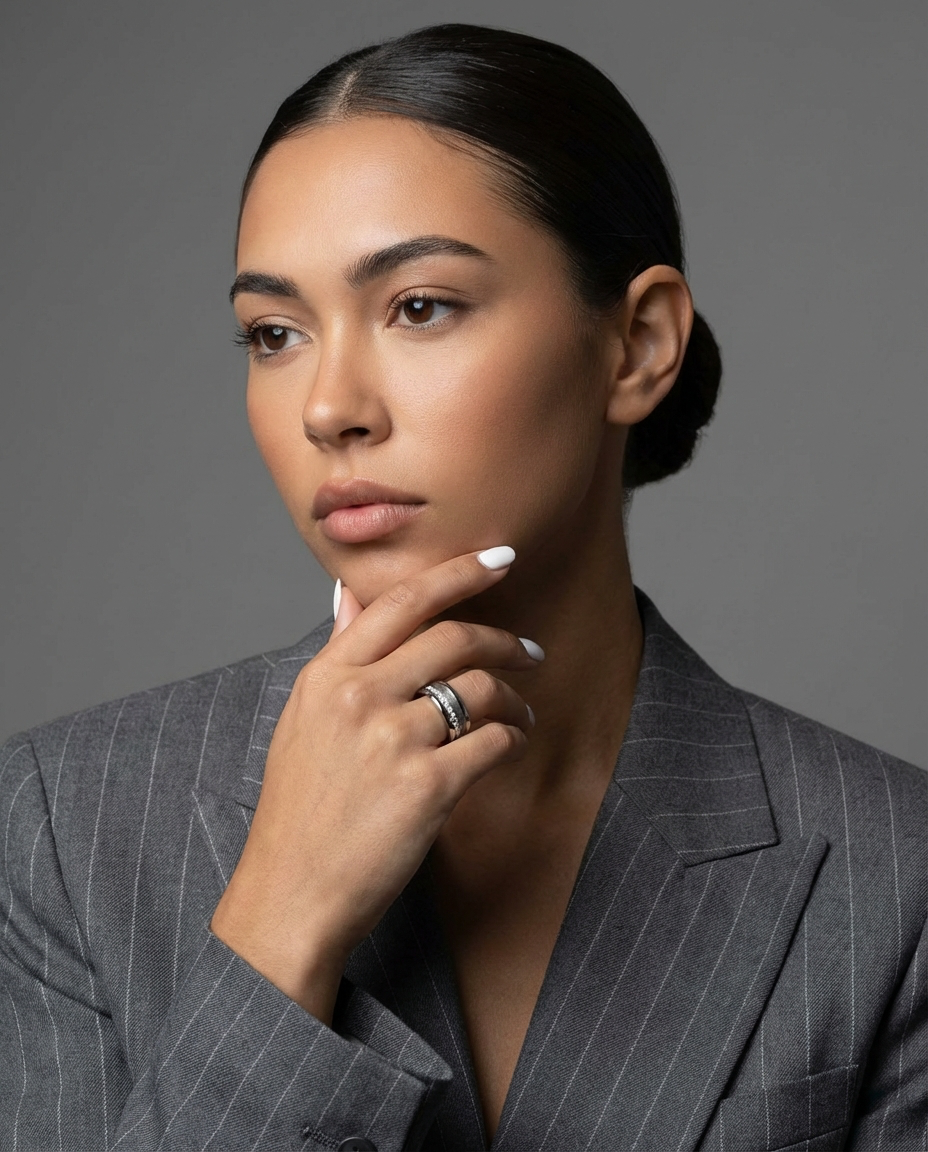 Entre l’éclat précieux du Trésor serti de zircons, la profondeur texturée de l’anthracite froissé, la modernité du titane Bella et Bella Melodia, et la douceur lumineuse de Plume et Neige Éternelle, ce pack incarne un style structuré, graphique et sophistiqué.
